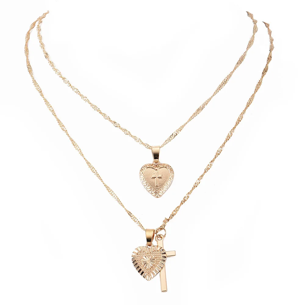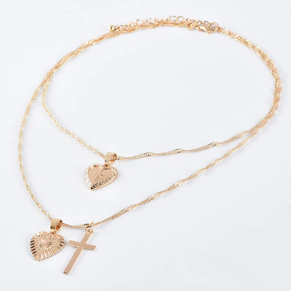 Двухслойная подвеска в виде креста с Иисусом от ALYXUY, колье-чокер для женщин, модные амулет, сердечко любви, цепочка до ключицы, христианские украшения