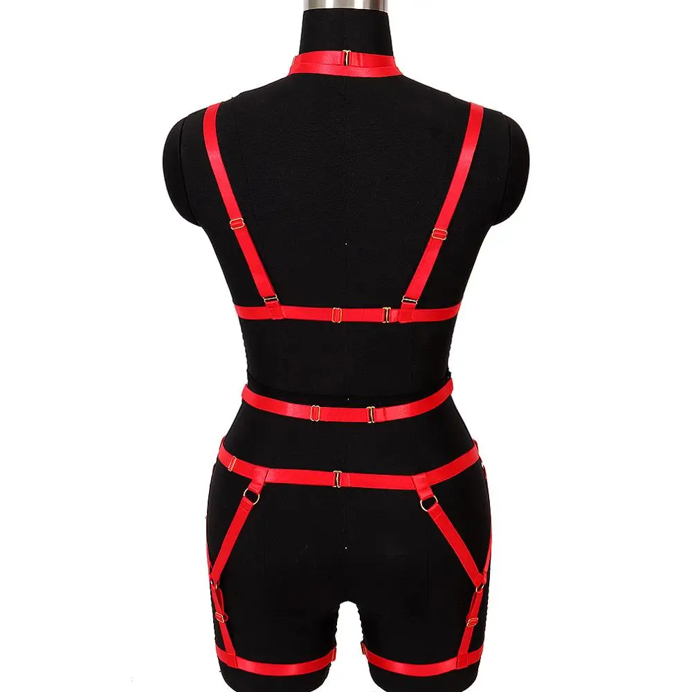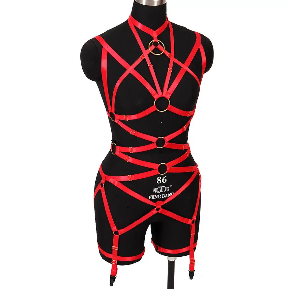 Женская портупея на бретельках, Красная Эластичная портупея для ног, размера плюс, в готическом стиле