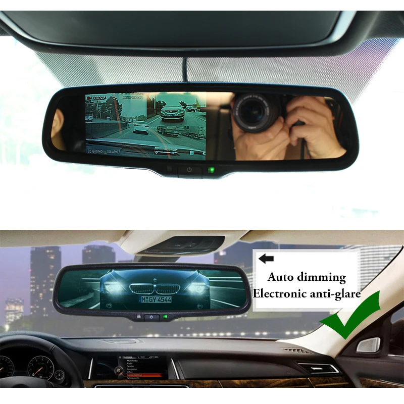 Профессиональный автоматический затемняющий антибликовый/зеркальный монитор заднего вида, независимо от того, в каком направлении идет сильный светильник, монитор mirro отрегулирует саму яркость, гораздо безопаснее при вождении.На задней части зеркального монитора есть датчик, который может почувствовать Яркость окружающей среды. Когда яркость меньше 20 люкс, SPM-TSR ослепительное зеркало начнет работать.Есть еще один датчик на передней панели зеркального монитора, он может также восприятия уровня сильного светильник от задней части автомобиля, а затем диск отражательную способность анти-ослепительно зеркало.