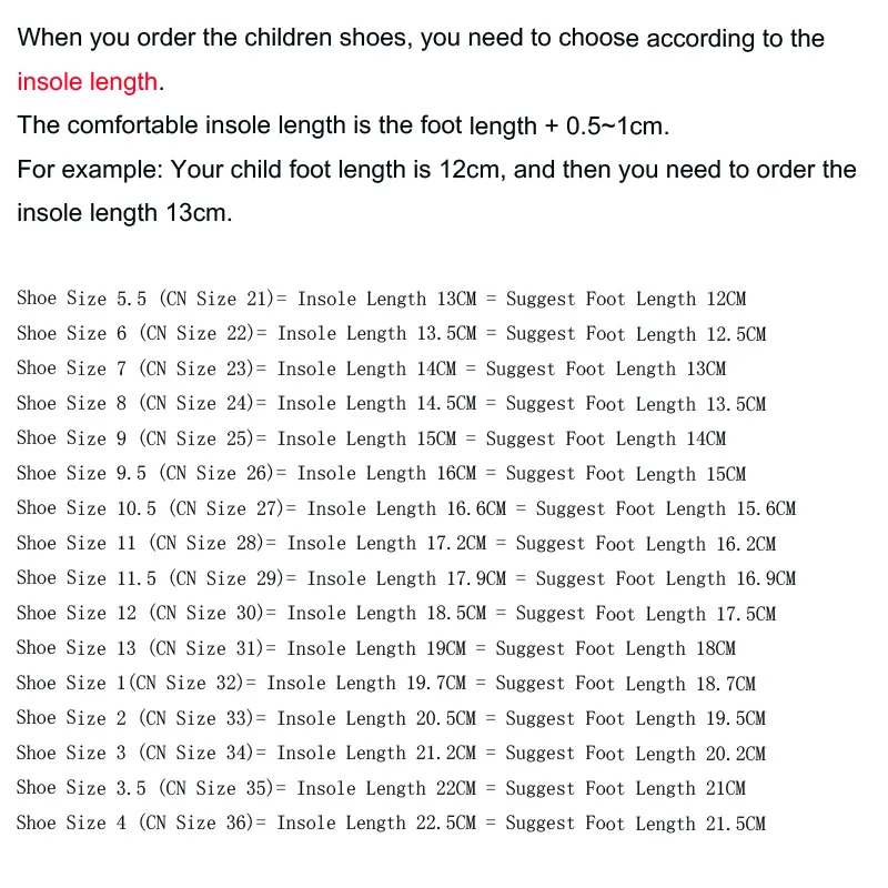 Размер обуви 5,5 = CN Размер 21 = стелька Длина (13 см)