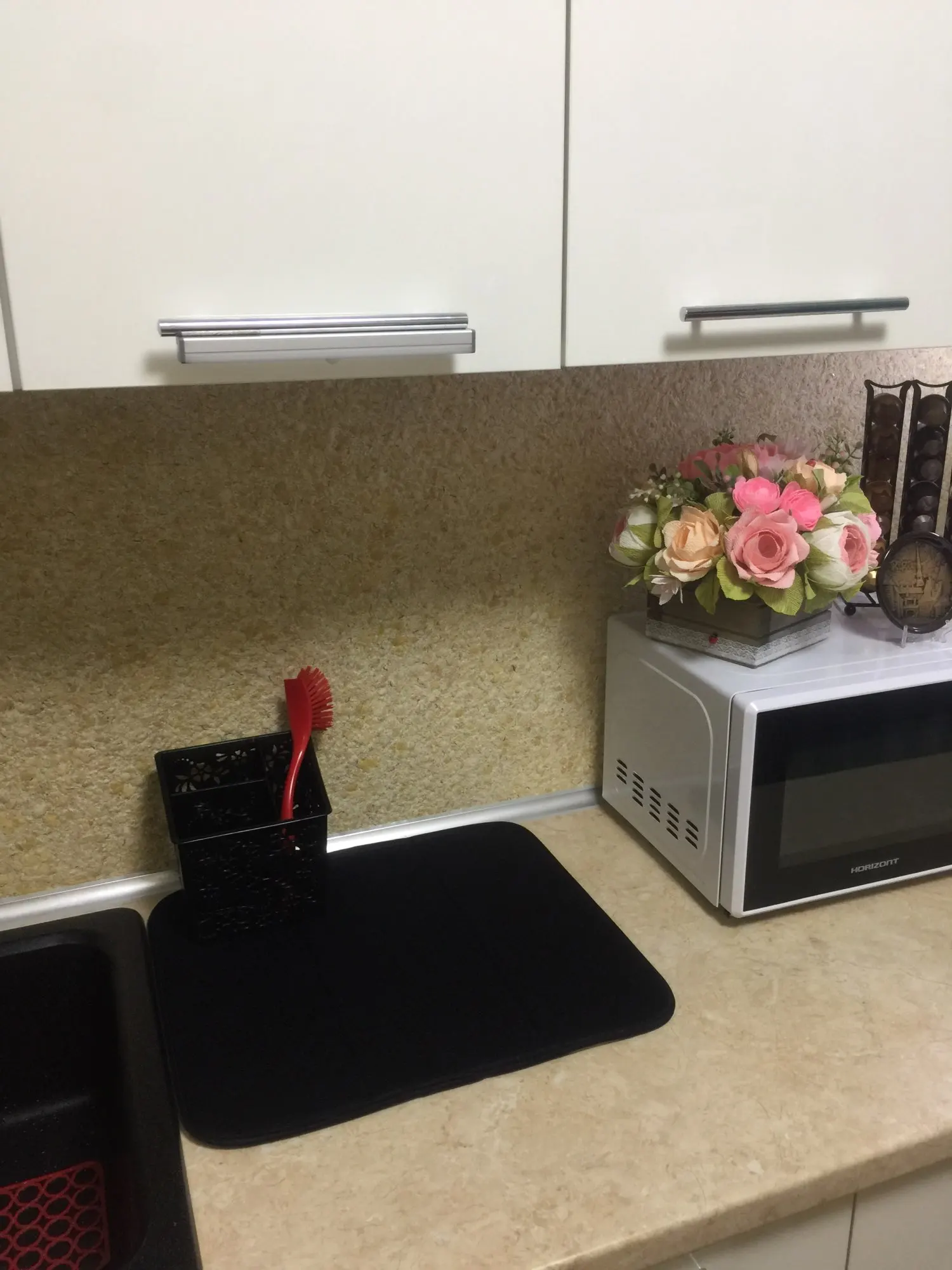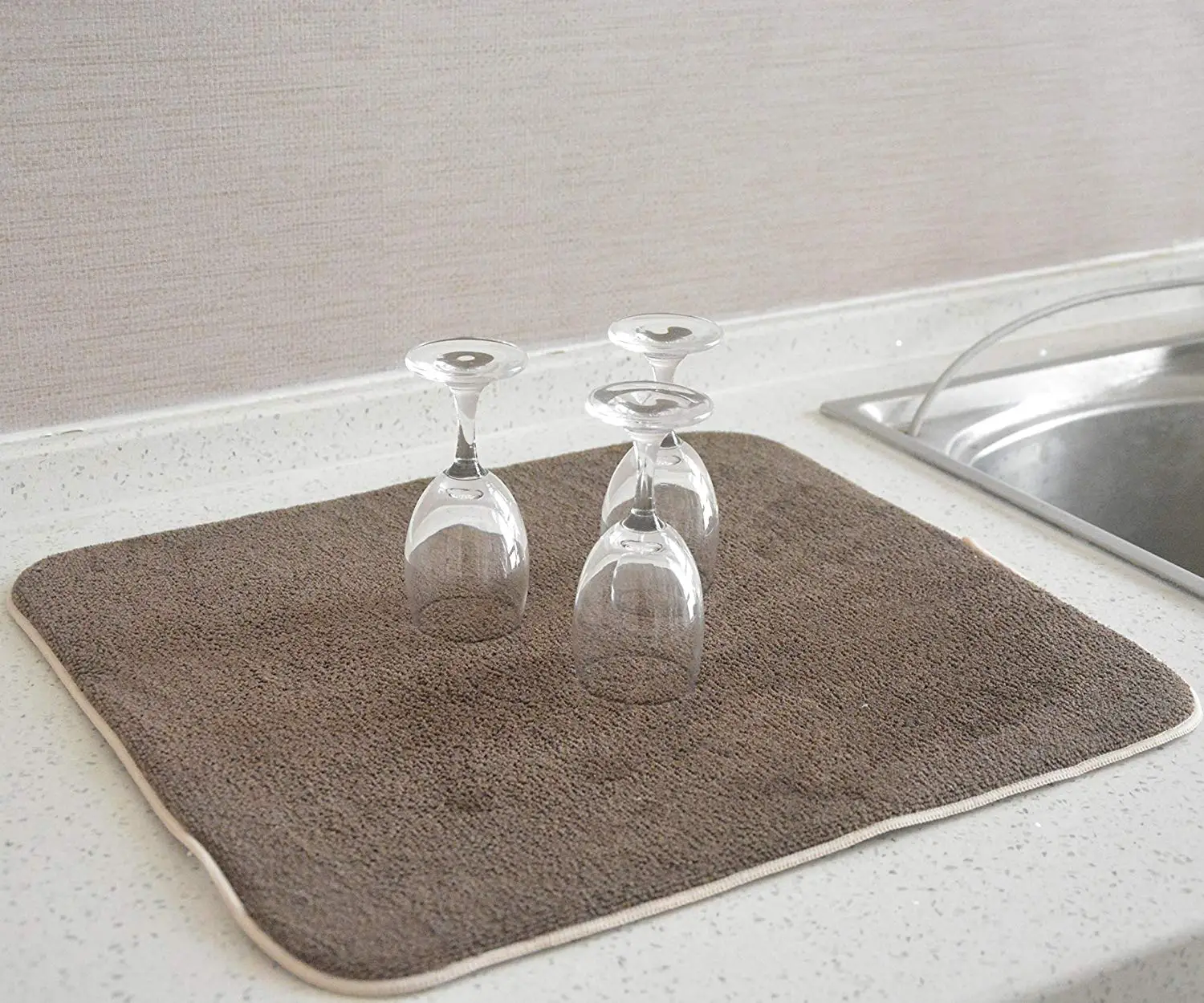 Изготовлен из микрофибры, ультра абсорбирующий и быстросохнущий коврик для сушки посуды.