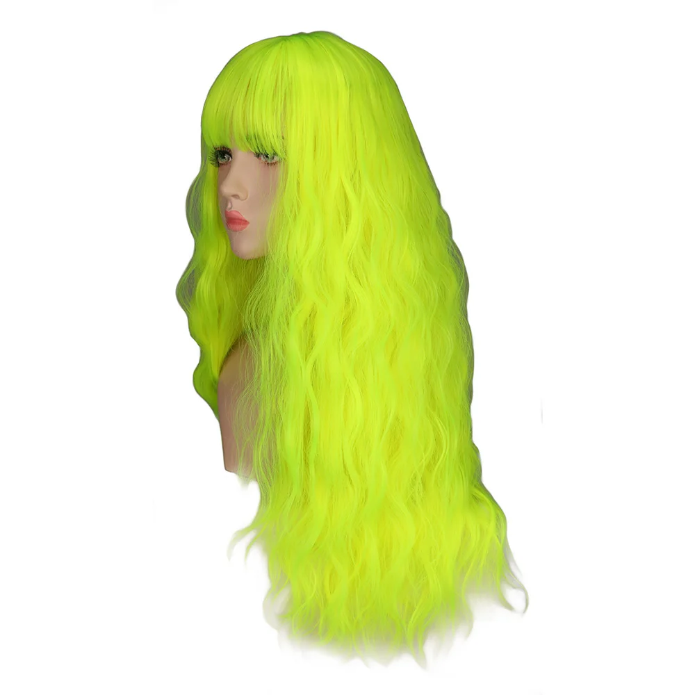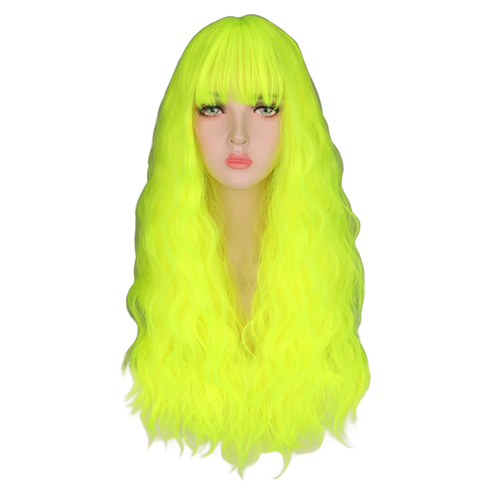 Курчавые вьющиеся парики QQXCAIW, натуральные длинные шелковистые неоново-желтые волосы, термостойкие синтетические парики