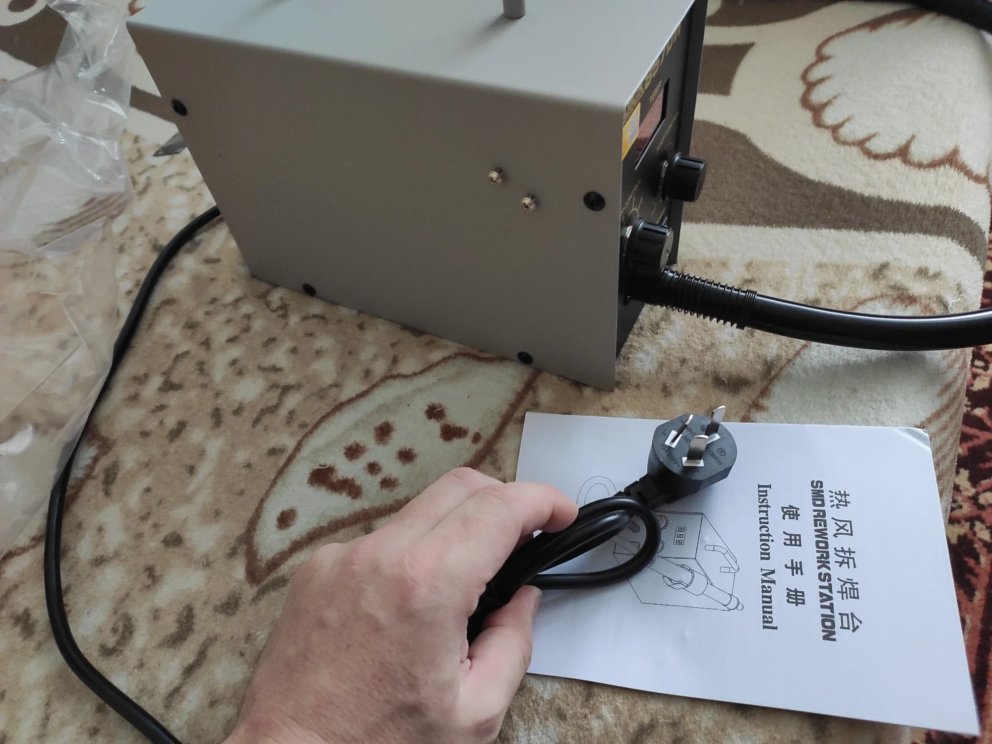 Не увидел на фото, что вилка китайская. Поэтому не заказал переходник. Пришлось брать провод от зарядного устройства ноутбука и перепаивать. Вся переделка заняла 15 минут. Дольше делал калибровку температуры. Успел взять по хорошей цене. Доставка до Кургана месяц.