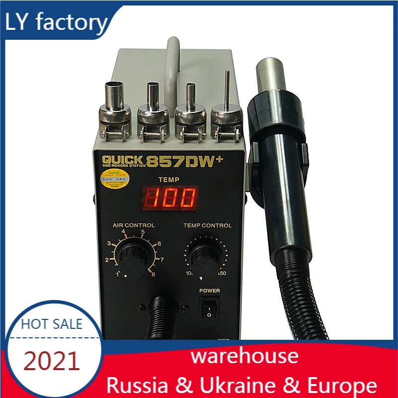 Станция для горячей переделки QUICK 857DW + паяльная станция 580 Вт, регулируемая станция с термофеном с подогревом, спиральный воздушный фен SMD