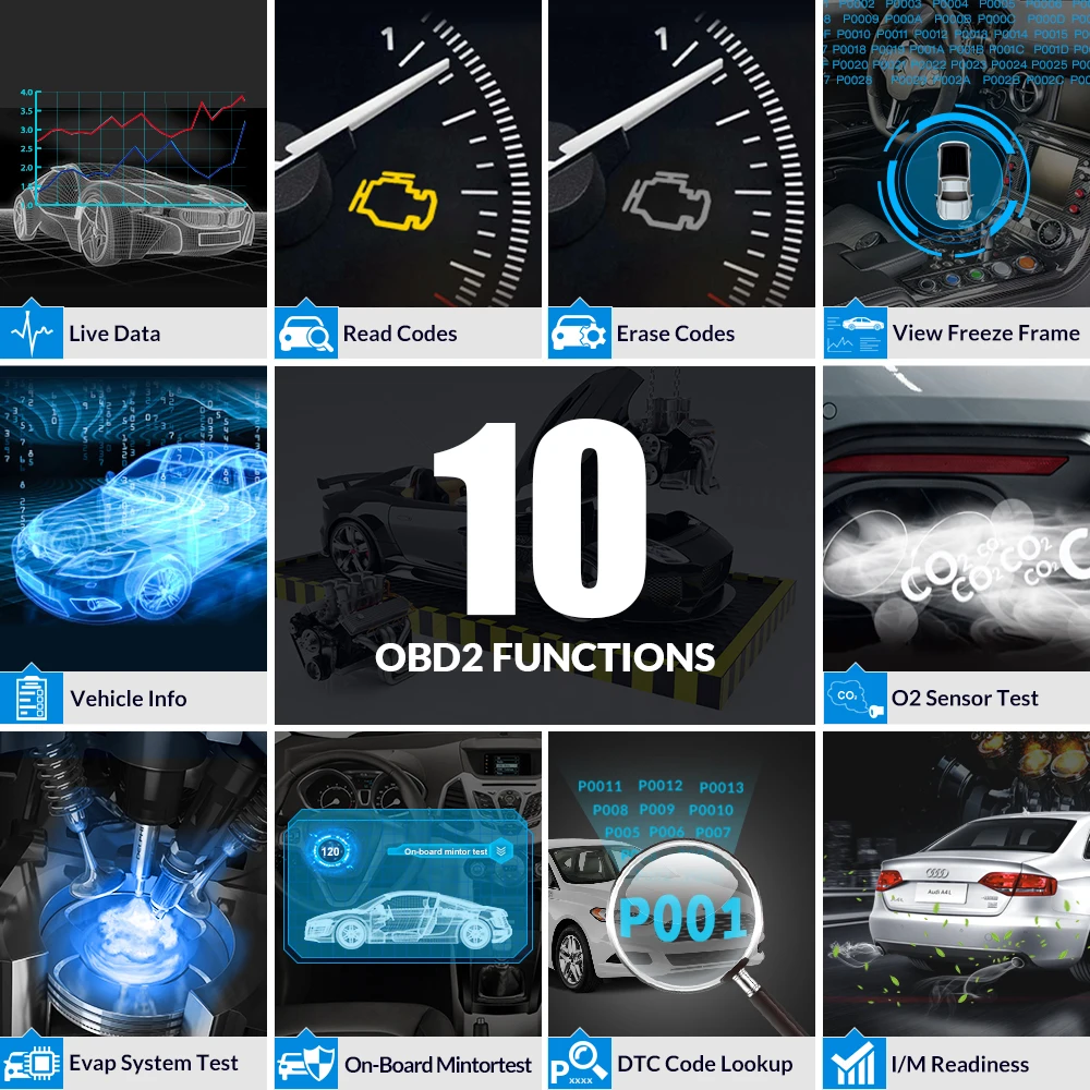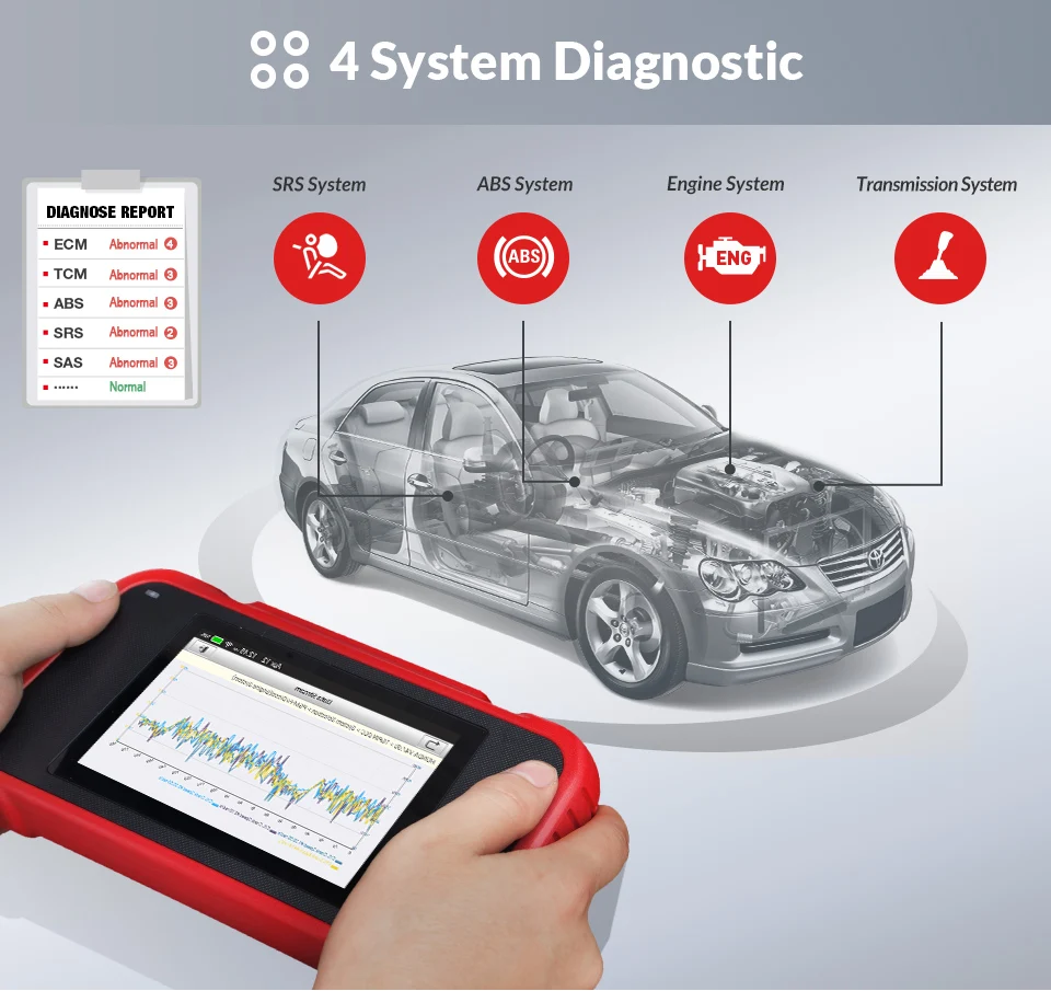 Диагностическая система двигателя: диагностический инструмент может помочь обнаружить зажигание двигателя, впрыск топлива, соотношение воздуха и топлива, а также условия выброса выхлопных газов в системе двигателя для повышения производительности транспортного средства, экономии энергии и уменьшения выхлопных газов.Диагностическая передача: имеет большой смысл в безопасном вождении, когда ваш автомобиль скользит или трудно переключиться. Этот диагностический сканер может определить проблемы с помощью считывания кодов в системе передачи или проверить состояние здоровья с помощью просмотра данных в режиме реального времени.Диагностическая система ABS: Диагностика проблемы ABS всегда должна начинаться с визуального осмотра всех компонентов тормозов, далее вам нужно будет восстановить коды ABS, чтобы сообщить вам, где проблема, И вот что делает этот сканер для вас.Диагностическая система подушек безопасности SRS: SRS, система безопасности, состоит из датчиков удара, модуля управления, и самих подушек безопасности, И это диагностическое устройство может обнаруживать Каждый электронный параметр, чтобы проверить его состояние здоровья.