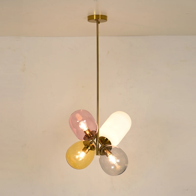 Светодиодные люстры с 4 цветными стеклянными шарами, комнатное укра...