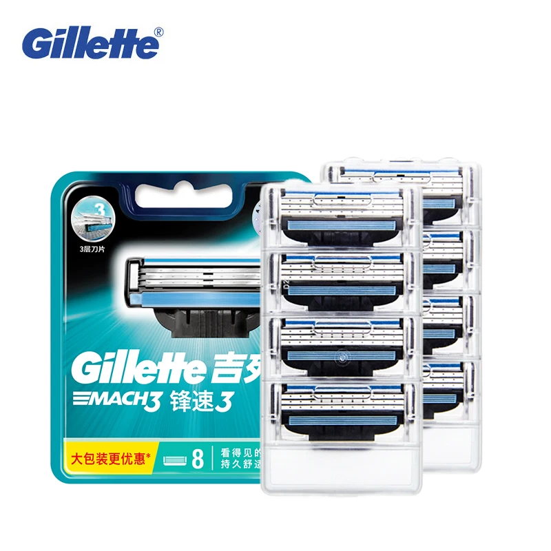 Gillette Mach3, Мужская бритва для лица, бороды, бритва из натуральной кожи, ручная Парикмахерская бритва, бритва для удаления волос, безопасное лезвие, заправка 8 шт.