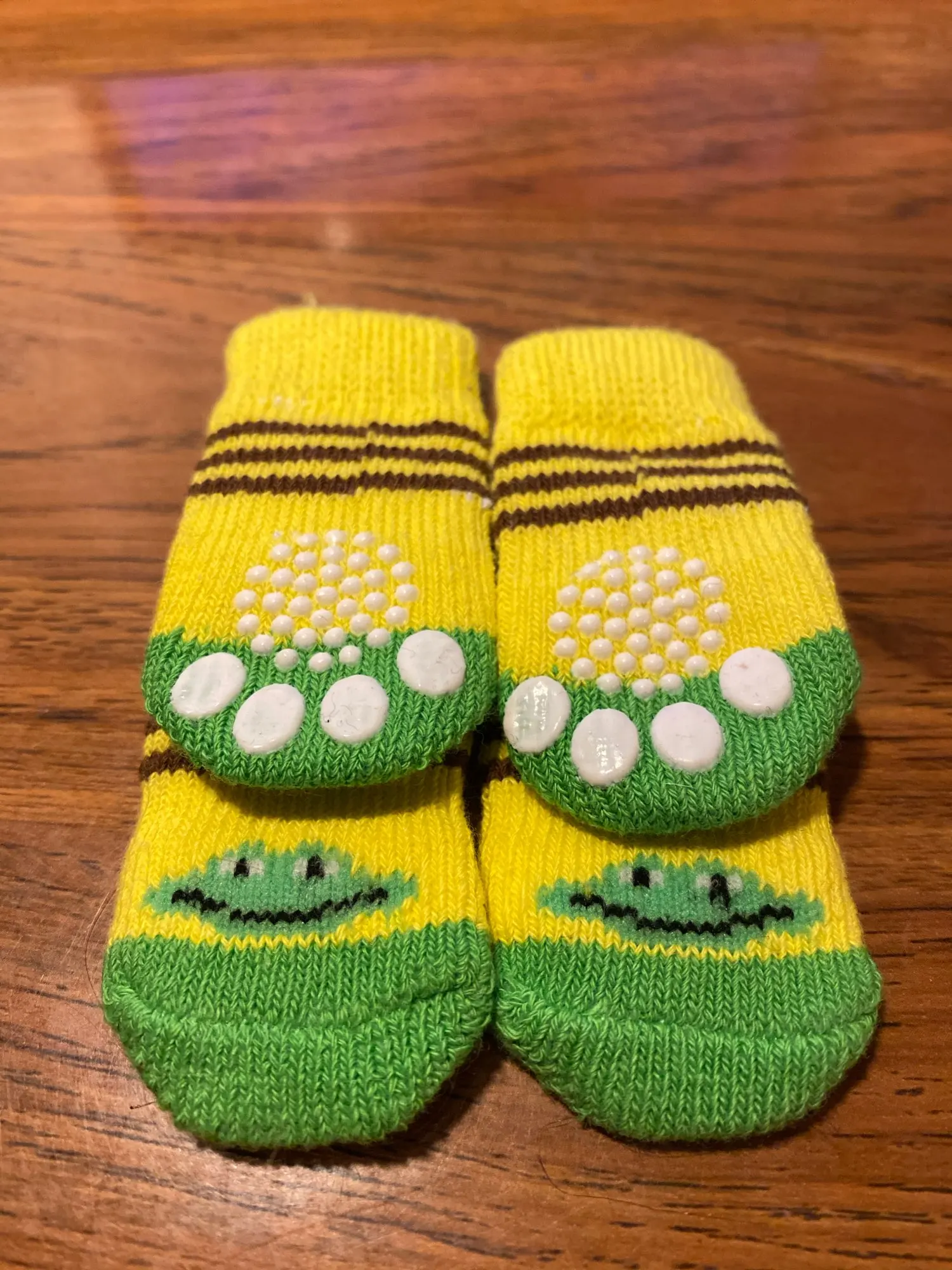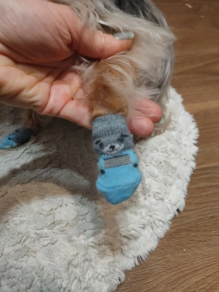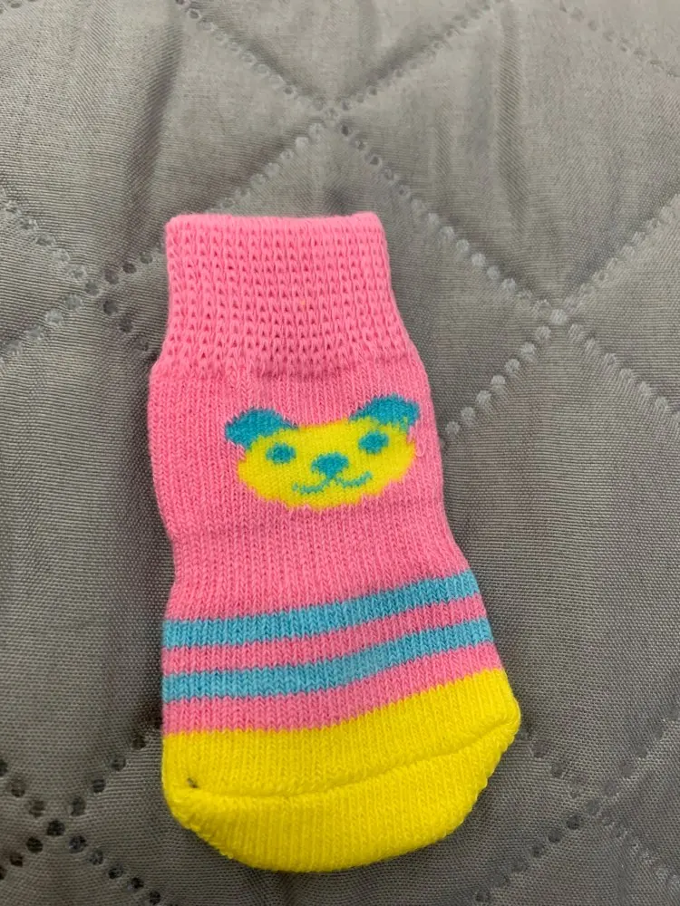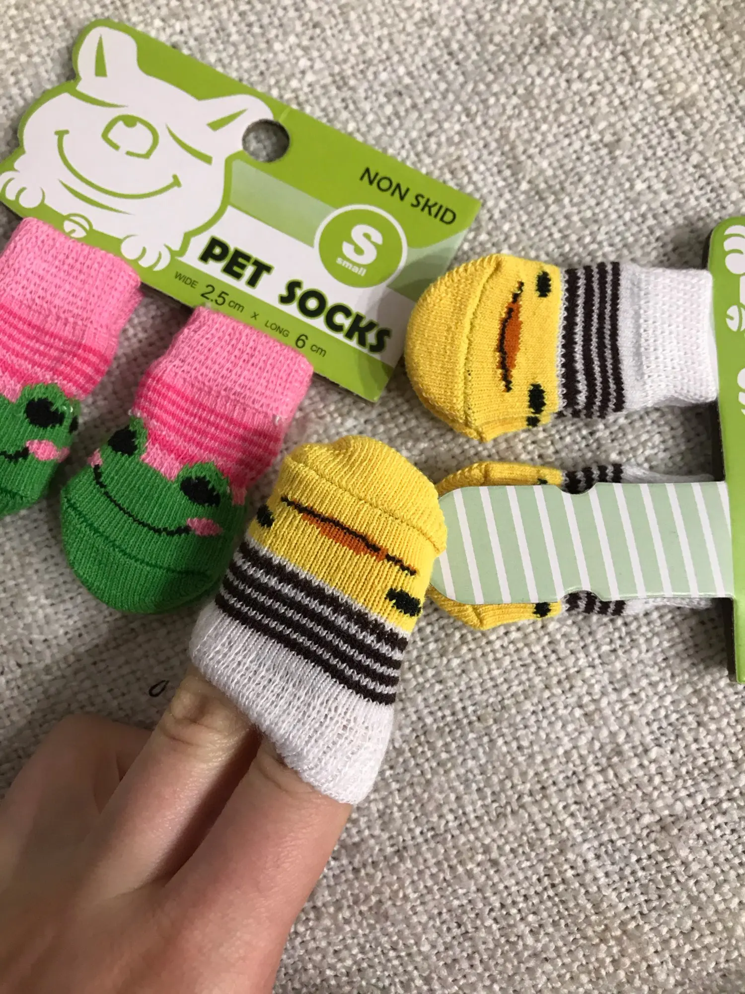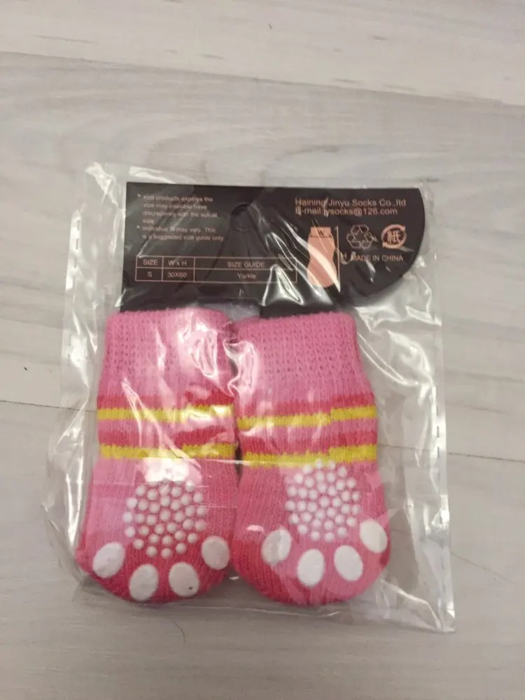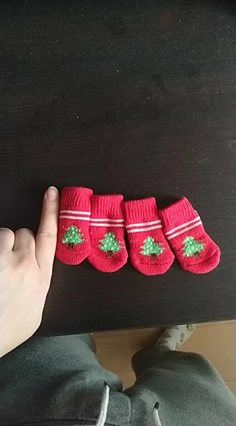 Носочки прикольные Качество приличное Размер s ооочень маленький На йорка 1.4 кг узковаты, хотя натягиваются К покупке рекомендую, размер выбирайте внимательно