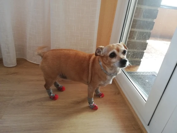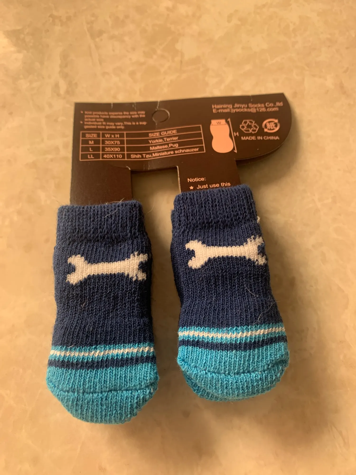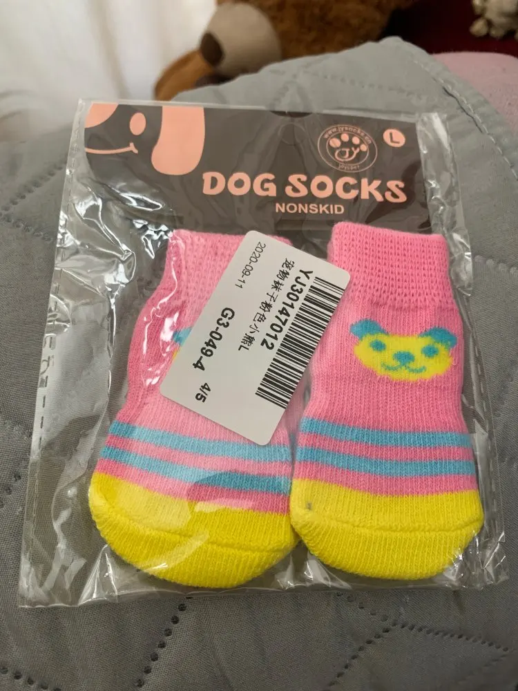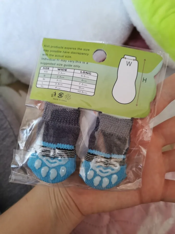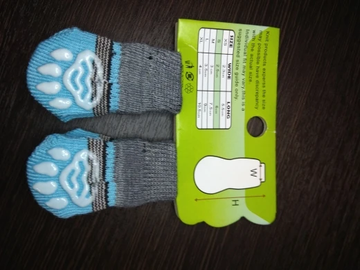 Носочки очень хорошего качества. Но моя собака их постоянно снимает. Взяла размер М, на моего Джек Рассела маловаты