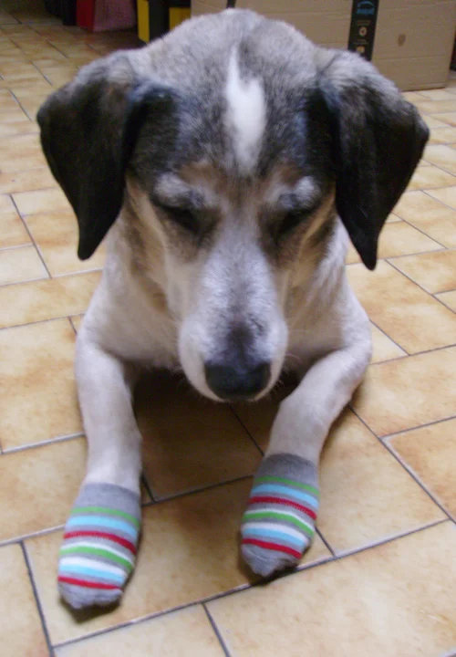 Носочки как на фото, очень милые, теперь главное одеть их на собаку