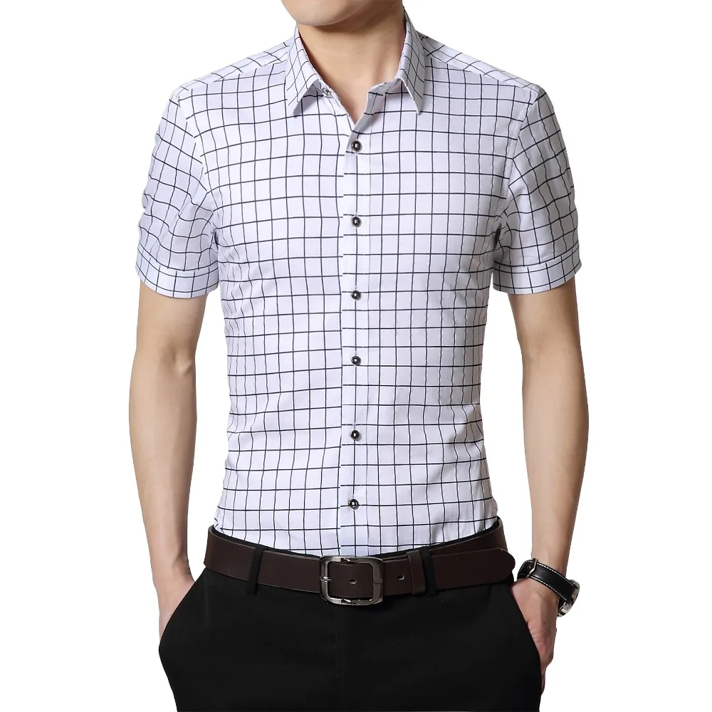 Размера плюс 5XL 2022 новые летние мужские Хлопковое платье рубашки для мальчиков короткий рукав клетчатый узор Бизнес Формальные Рубашки Мужской