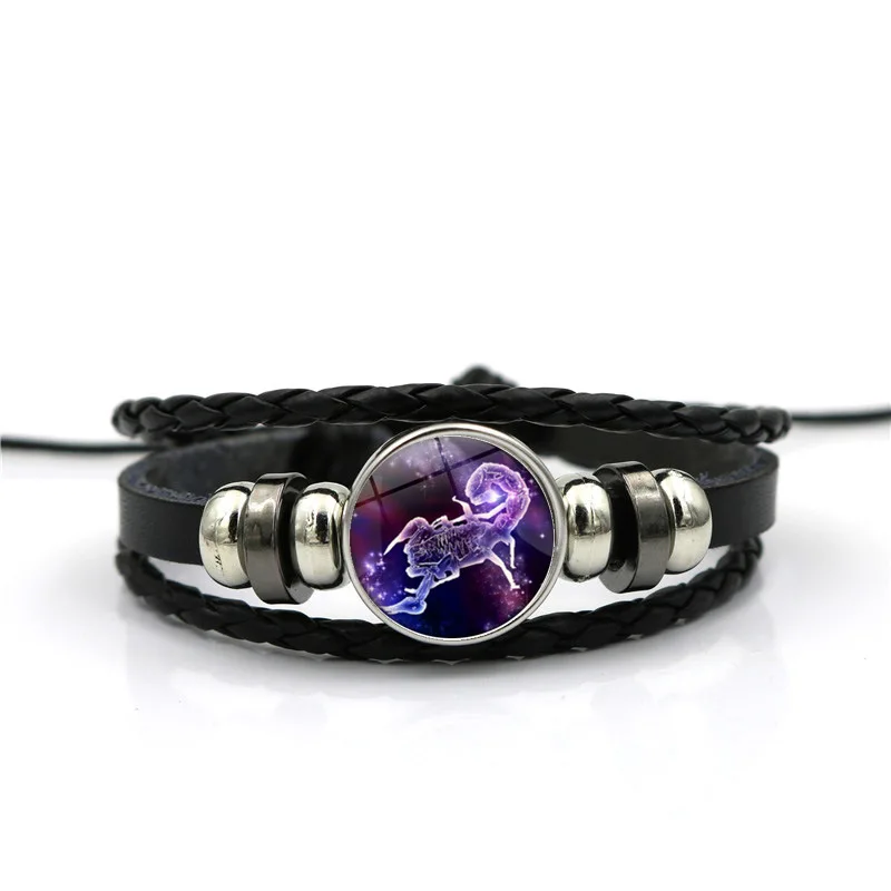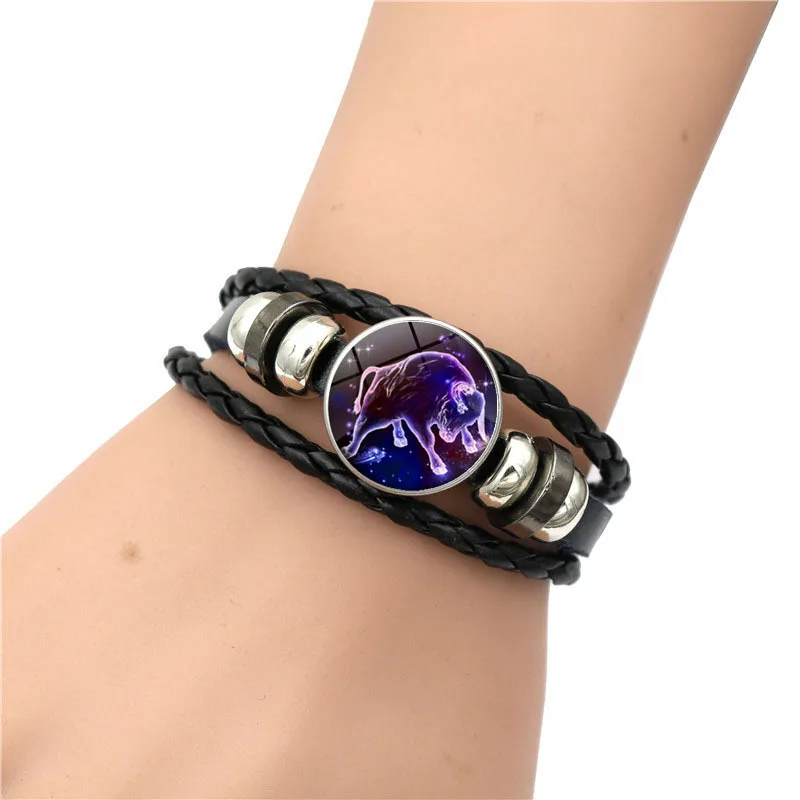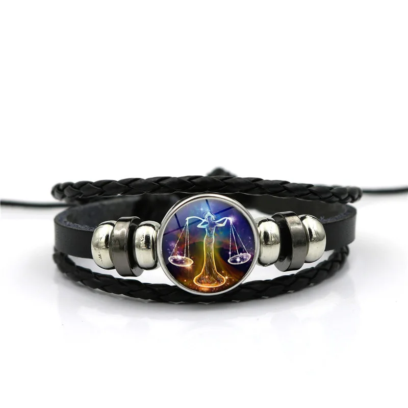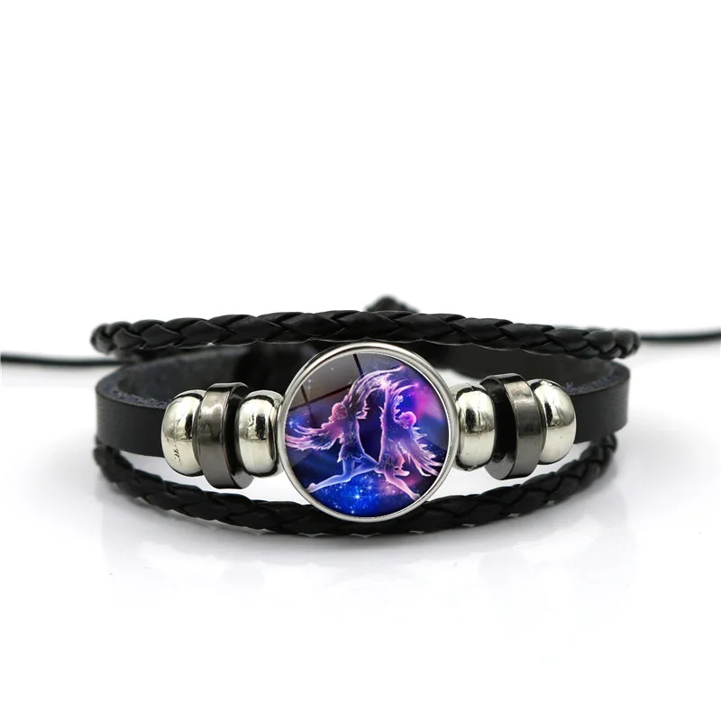 12 созвездий Выпуклое Круглое стекло панк Многослойный черный кожаный браслет мечтательный кожаный браслет очаровательные женские мужские модные подарки