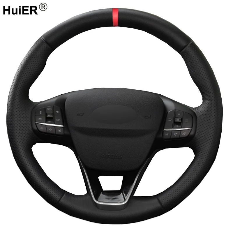 Черная кожаная чехол рулевого колеса автомобиля HuiER ручной работы...