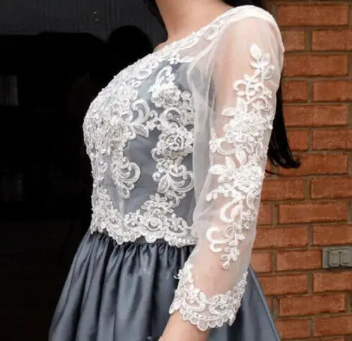 Свадебные Куртки с аппликациями, верхние Свадебные болеры, кружевные обертывания, рукав 34, жемчуг, вышивка бисером, v-образный вырез на спине