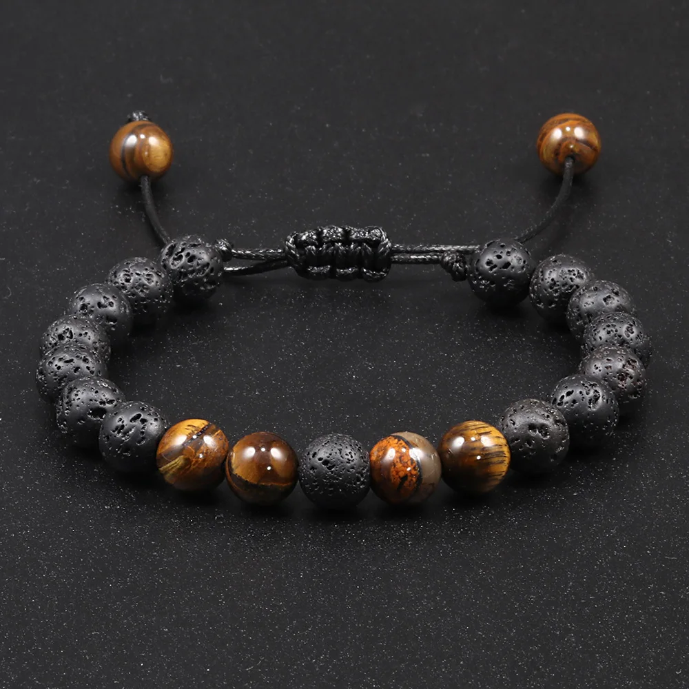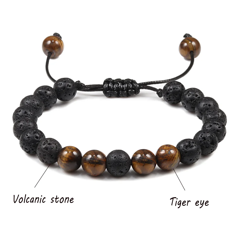 Регулируемый браслет из лавового камня, мужские бриллиантовые браслеты с тигровым глазом, женский браслет, брендовые ювелирные изделия