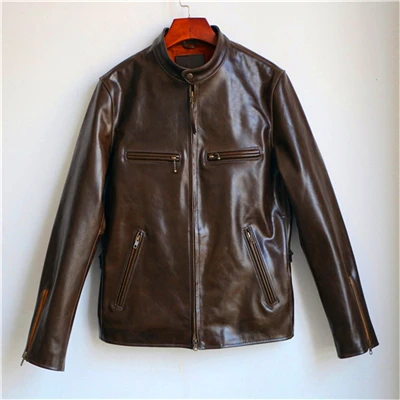 AZ18-1 прочтите описание! Мужская куртка из натуральной воловьей кожи азиатского размера для верховой езды