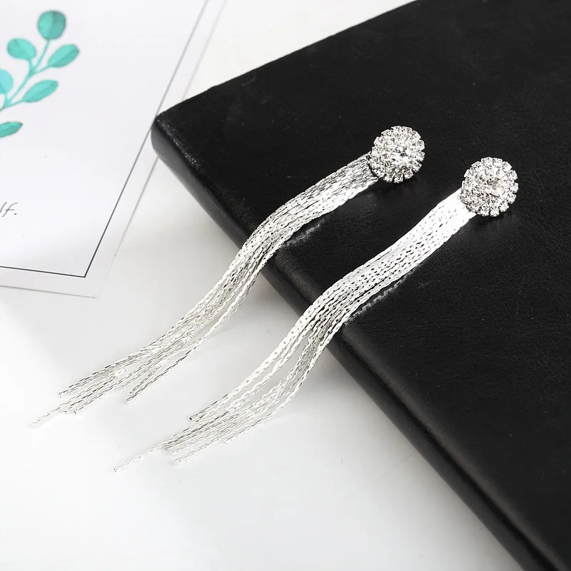 Название:Корейские модные серьги с кисточками и кристаллами, свадебные серьги, ювелирные изделия для женщин, темпераментные длинные серьги, оптовая продажа аксессуаров