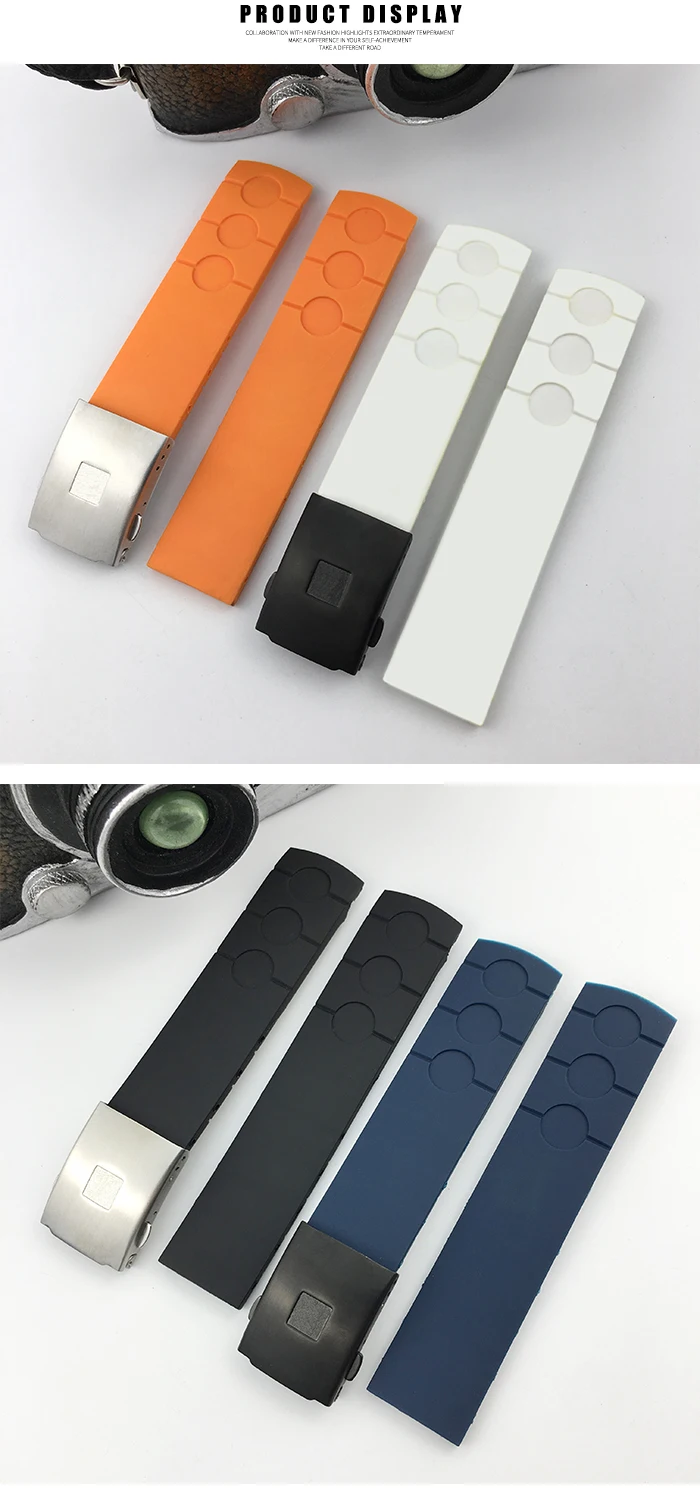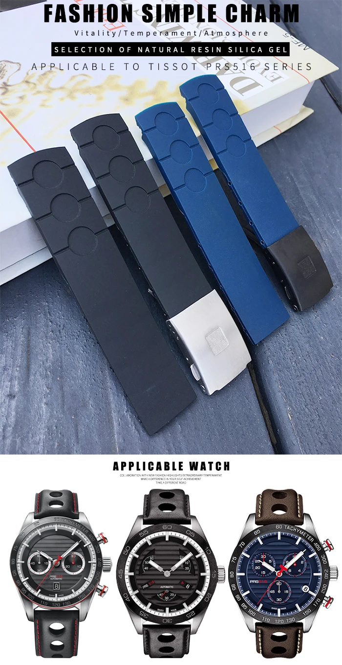 Ремешок силиконовый резиновый для часов Tissot PRS516, водонепроницаемый браслет со складной пряжкой, Черный Синий Оранжевый, 20 мм