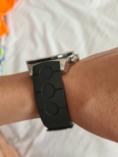 Защелка на ремешке плохо застегивается болтается, пришлось ставить на ремешок родную застежку. Ремешок очень быстро пачкается.