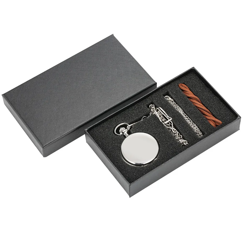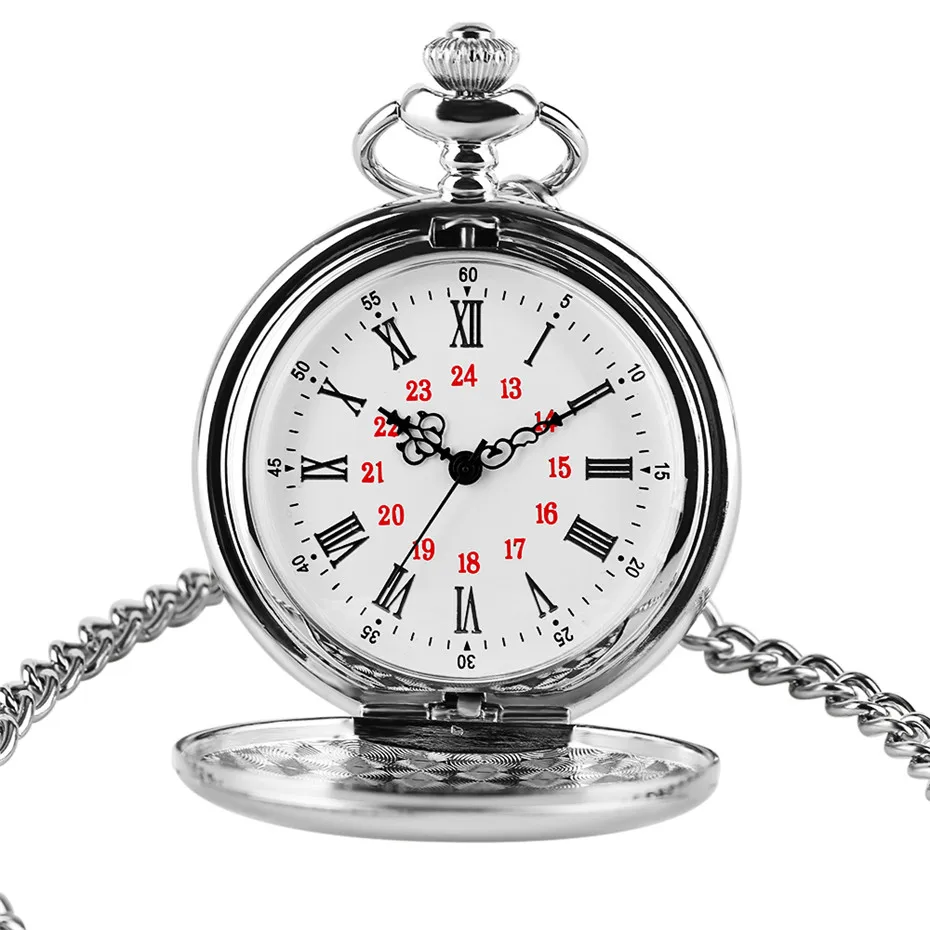 Лидер продаж, серебристый гладкий Чехол для часов с римскими цифрами, комплект кварцевых карманных часов, ожерелье, цепочки, подарки для мужчин и женщин