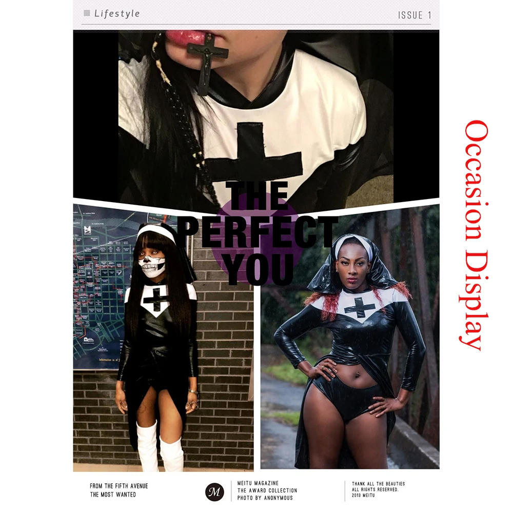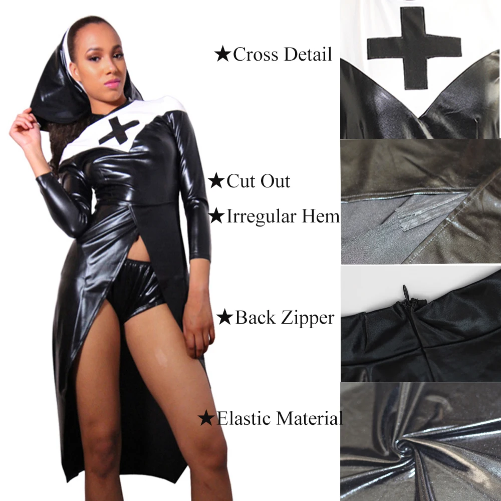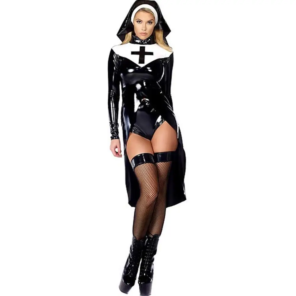 Женский костюм-соблазнительница из искусственной кожи, костюм монашки из ПВХ, Хэллоуин косплей фантазии