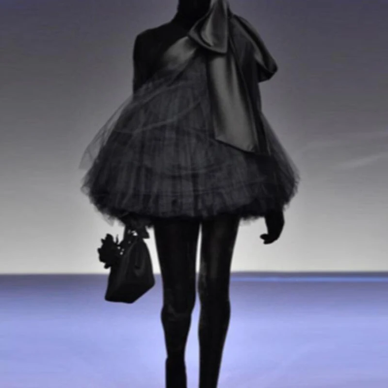 Платье мини на одно плечо с большим бантом, пышное Тюлевое короткое вечернее, для выпускного вечера, черного цвета