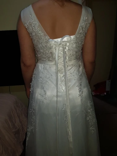 Das Kleid wäre recht schön. Nur leider ist es oben viel zu weit und ungenau gearbeitet und viel zu lang