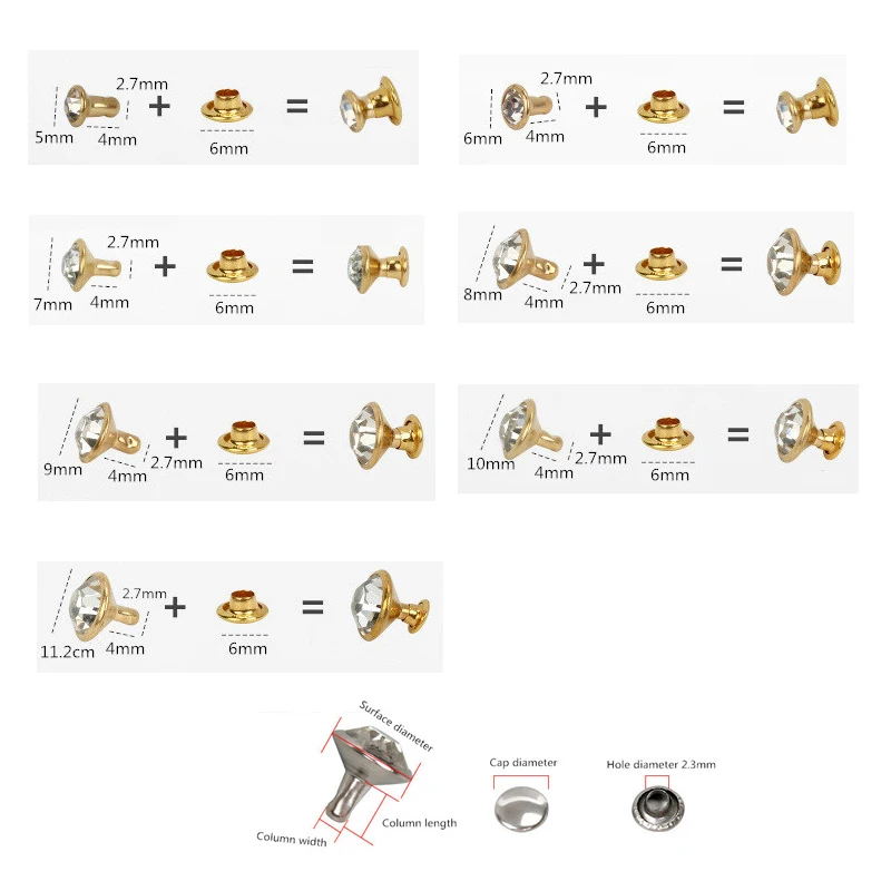 Название: золотистые/Серебристые Стразы с заклепкамиХарактеристики: 100% новый и высокое качествоМатериал: медь + стеклоРазмер: 5/6/7/8/9/10/11.2 ммЦвет: Золотой/СеребряныйФункция: в форме, очень красивый Фантастический Стиль. Идеально подходит для украшения одежды, сумок, обуви и т. д. . Легко устанавливается, очень хороший выбор для самостоятельной работы.