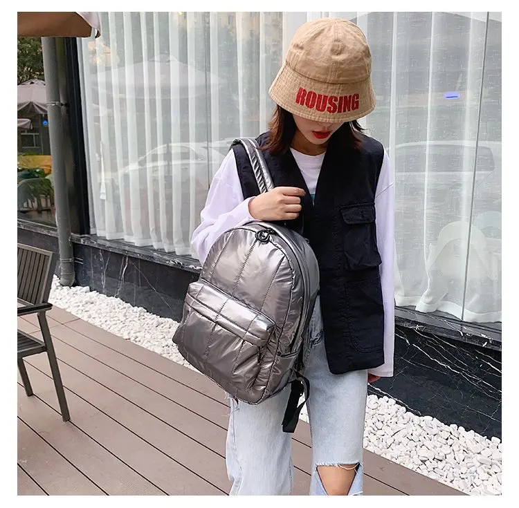 Повседневный модный нейлоновый Блестящий водонепроницаемый рюкзак для мужчин и женщин, легкий спортивный рюкзак, Студенческая школьная сумка, пуховая сумка, новинка 2022