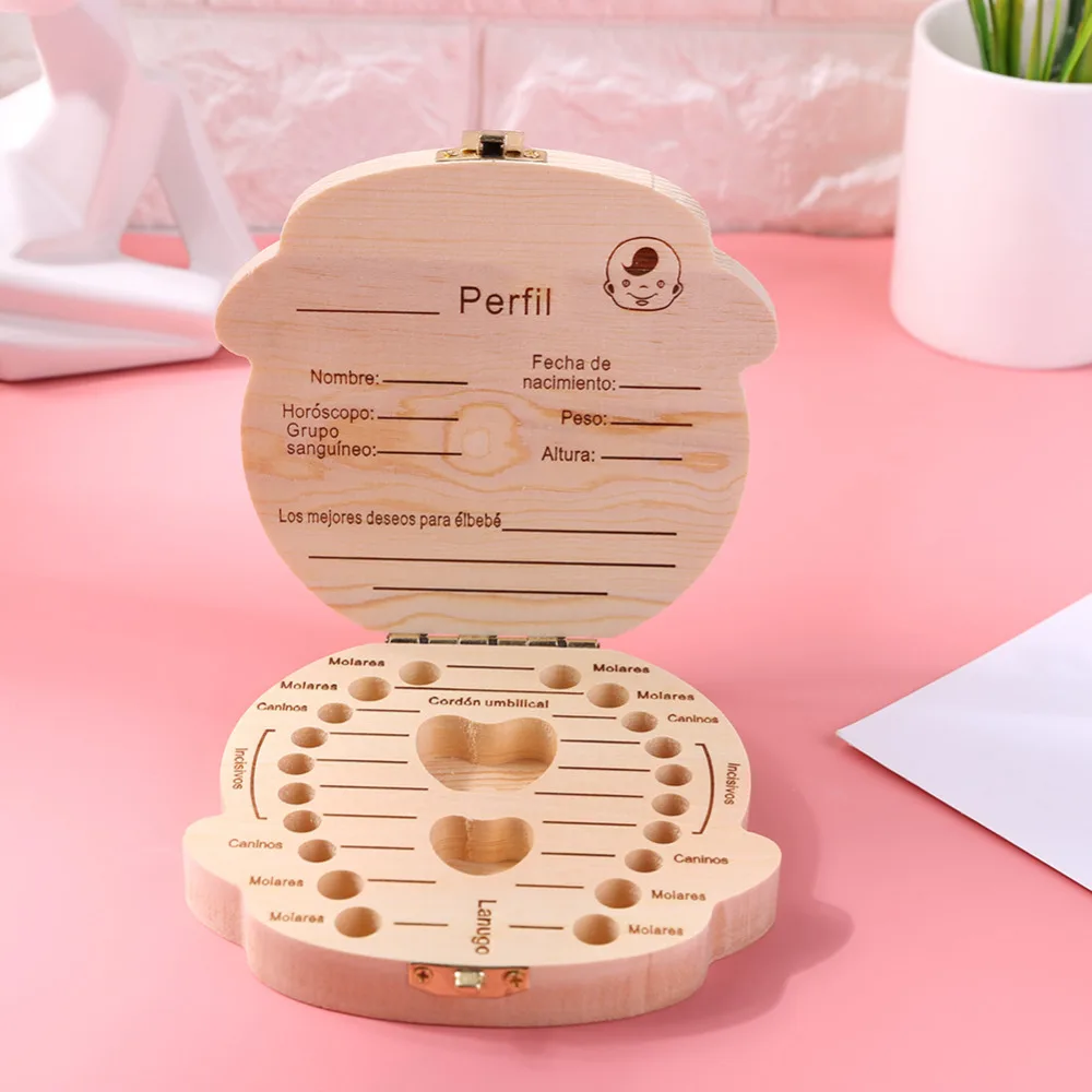 Деревянная детская коробка для хранения зубов, английскийиспанскийф...