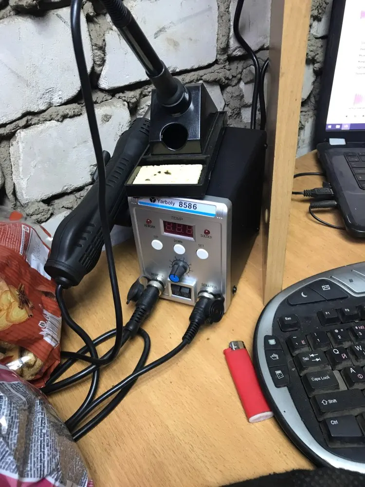 Паяльник и тепловой пистолет работают. Паяльная станция на основе импульсного источника питания, а не на основе thansformer. Рамка может быть сделана меньше, она все еще пуста внутри.