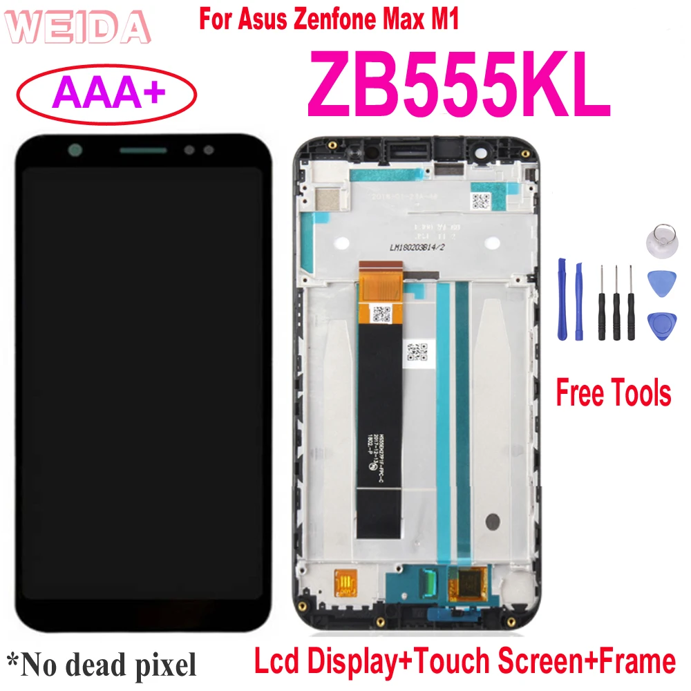 ЖК-дисплей AAA + 5,5 "для Asus Zenfone Max M1 ZB555KL, сенсорный экран с дигитайзером, стеклянный сенсор в сборе с заменой рамки