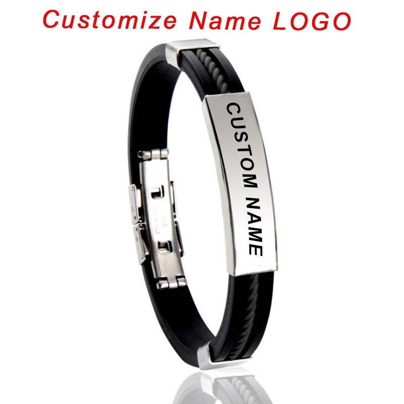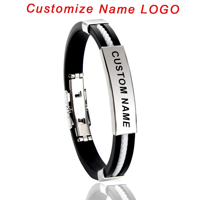 Индивидуальный Логотип заготовка для подвески с гравировкой имени силиконовый браслет надпись дружбы браслеты для женщин мужчин ID браслет роскошные кнопки ювелирные изделия