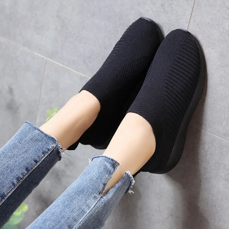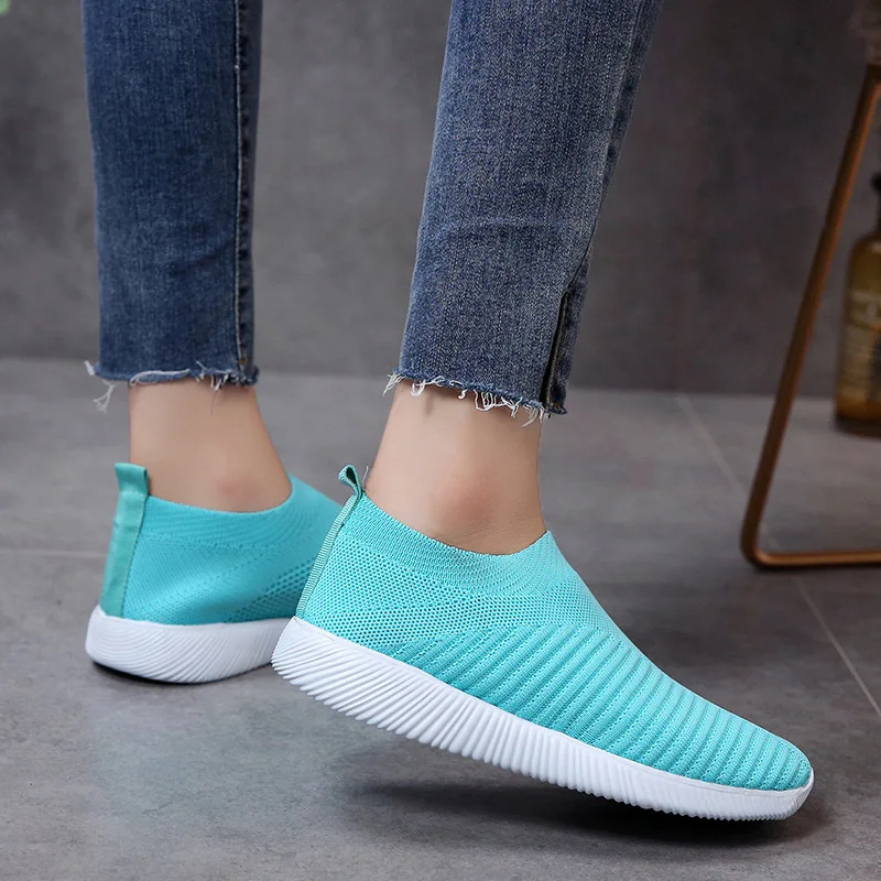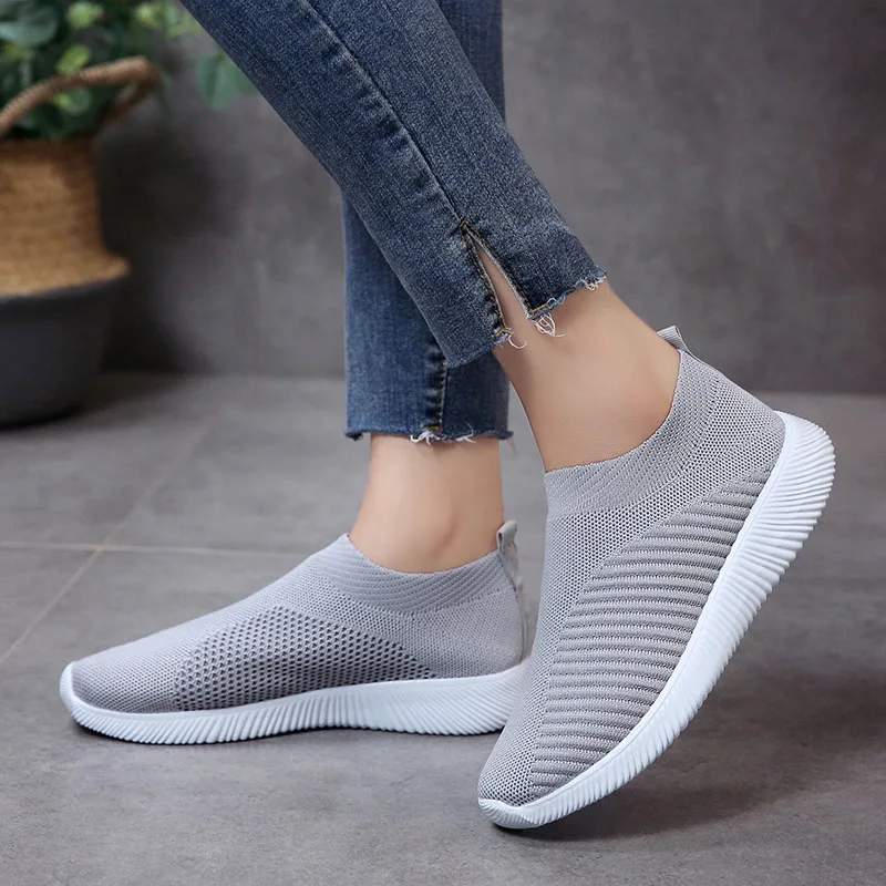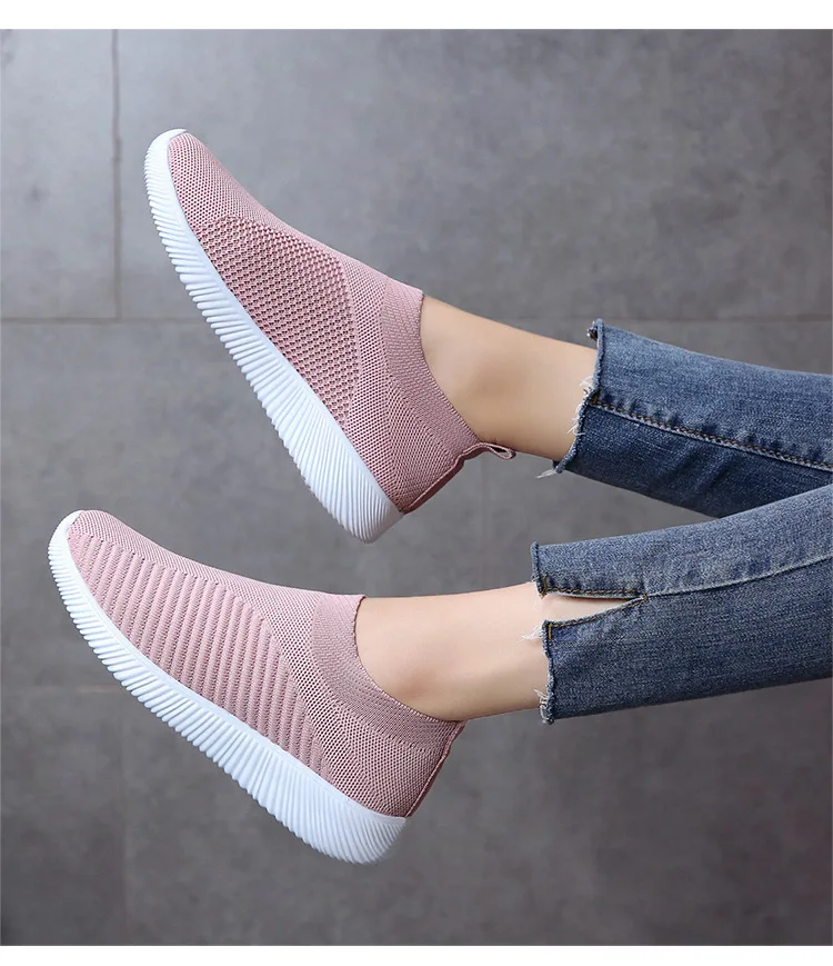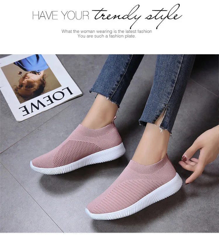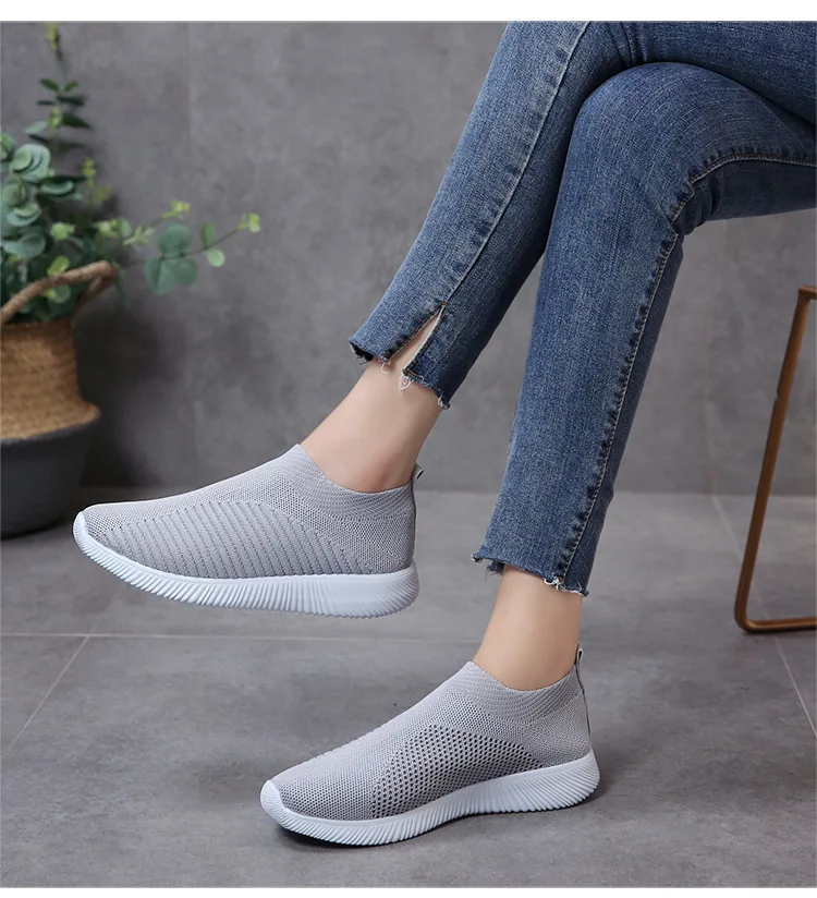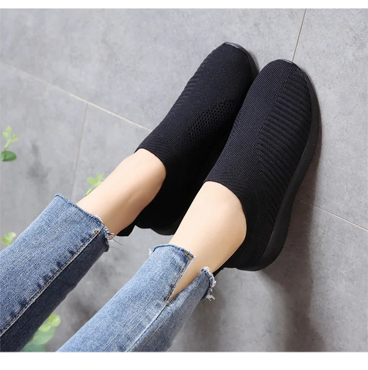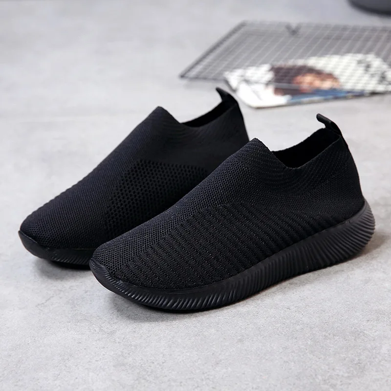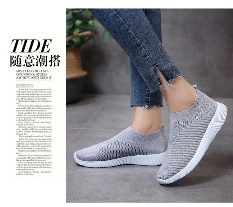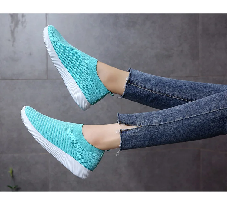Кроссовки женские трикотажные, вулканизированные, на плоской подошве