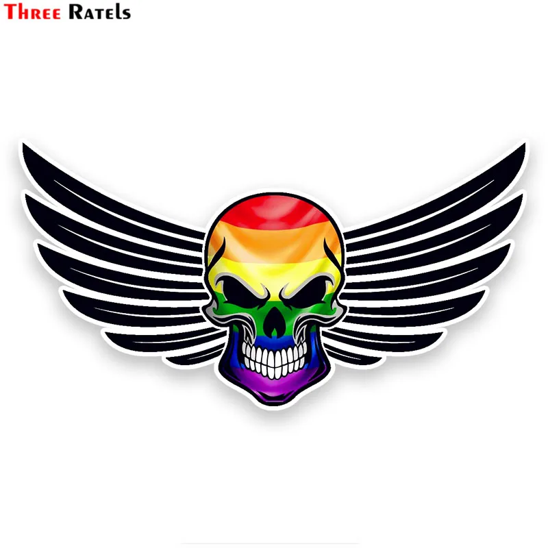 Три Ratels FTC-787 # 20X10.7CM в готическом стиле с черепом и крыльями на спине, мотив Гей ЛГБТ Радужный Флаг внешний Виниловая пленка для оклеивания автомобилей, Стикеры