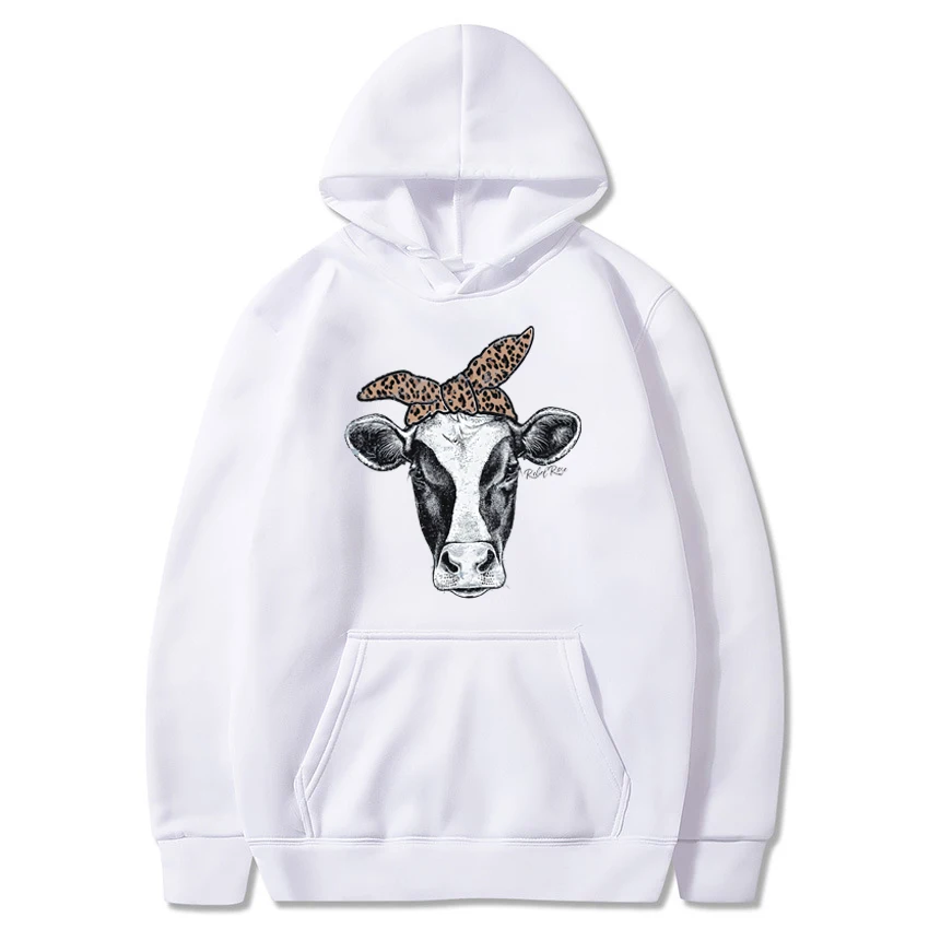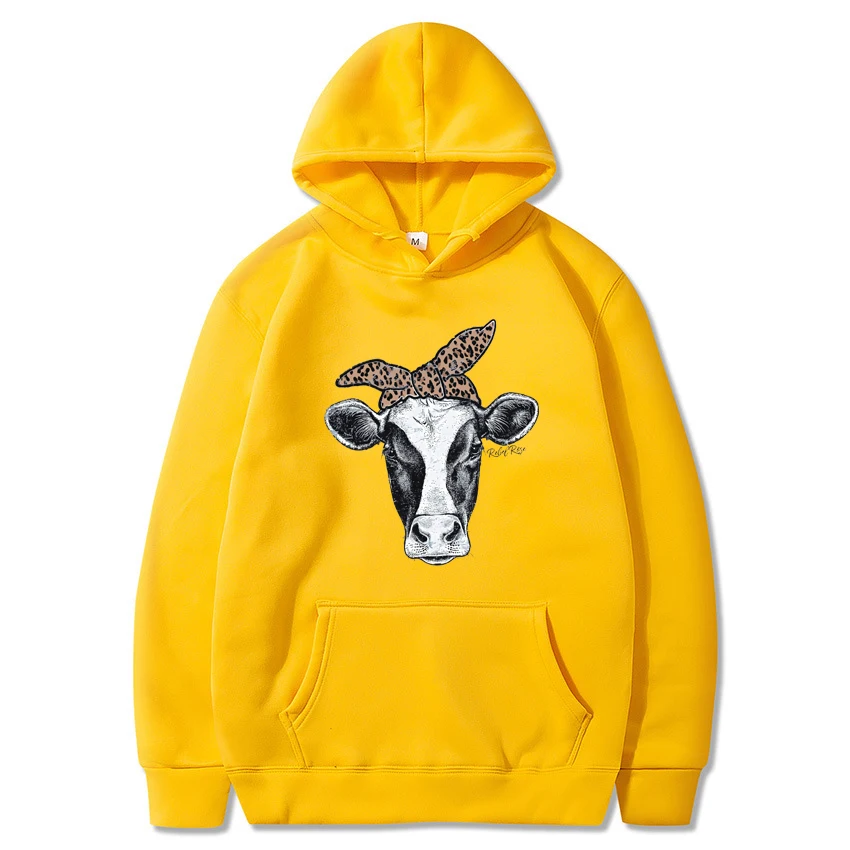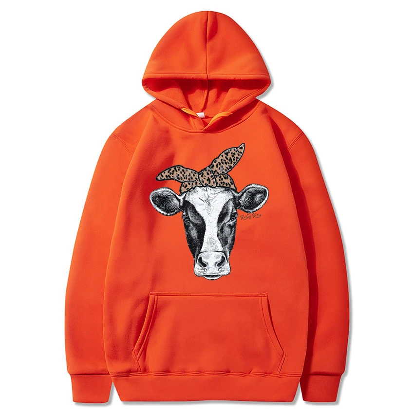 Женская зимняя толстовка с капюшоном, забавная толстовка с рисунком коровы, бандана, пуловер из коровьей шерсти, толстовка с капюшоном из коровьей шерсти