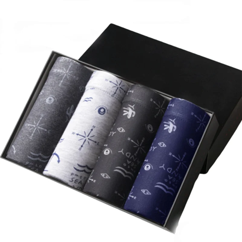 Высококачественные мужские трусы брендовые боксеры с принтом, нижнее белье U выпуклое, сексуальные мягкие дышащие трусы 4 шт.компл.
