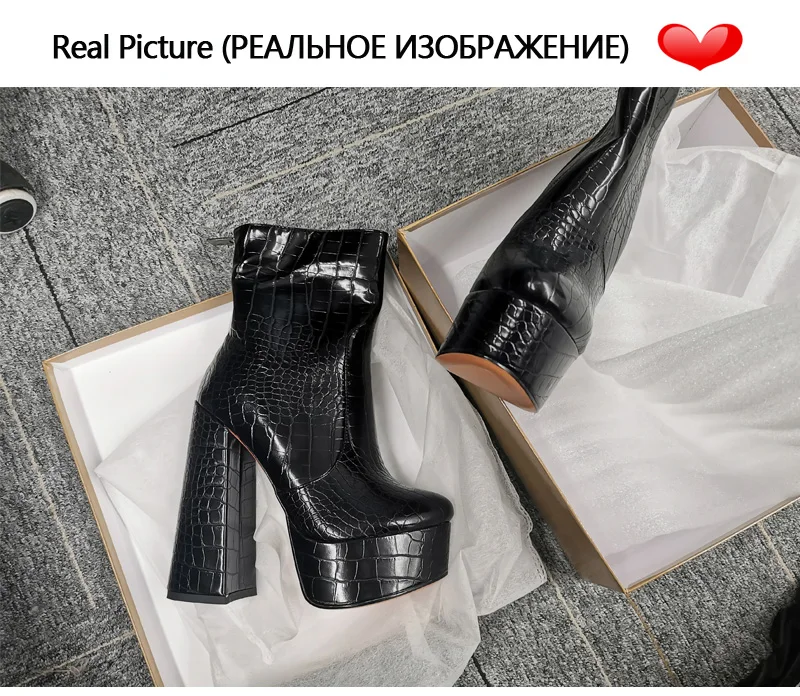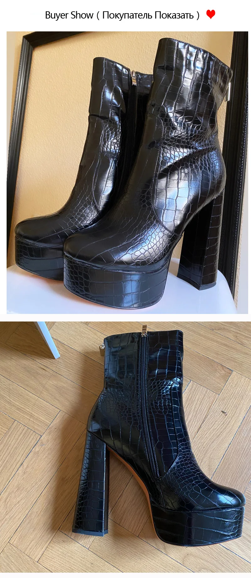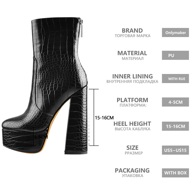 Женские ботильоны Onlymaker на высоком массивном каблуке, ботинки на платформе с круглым носком и узором из камней, короткие толстые зимние черные ботинки