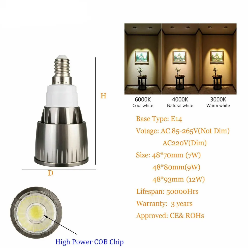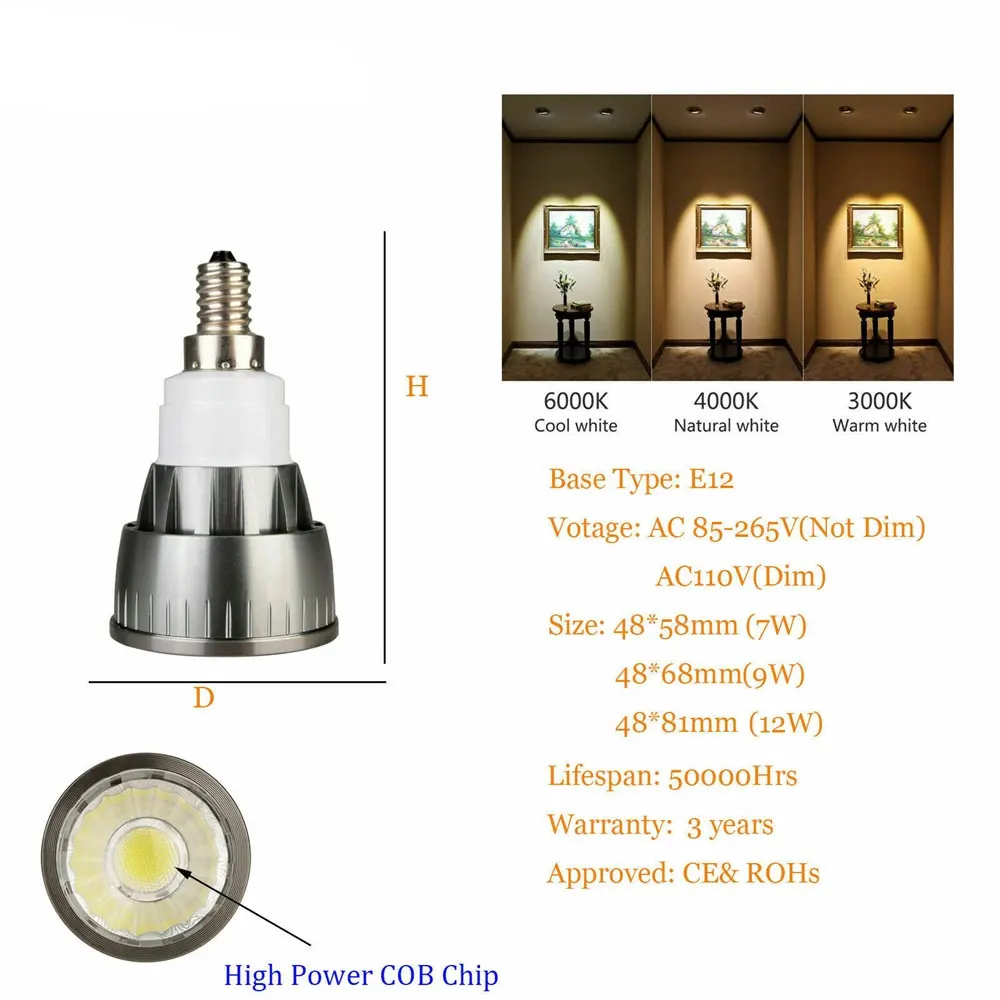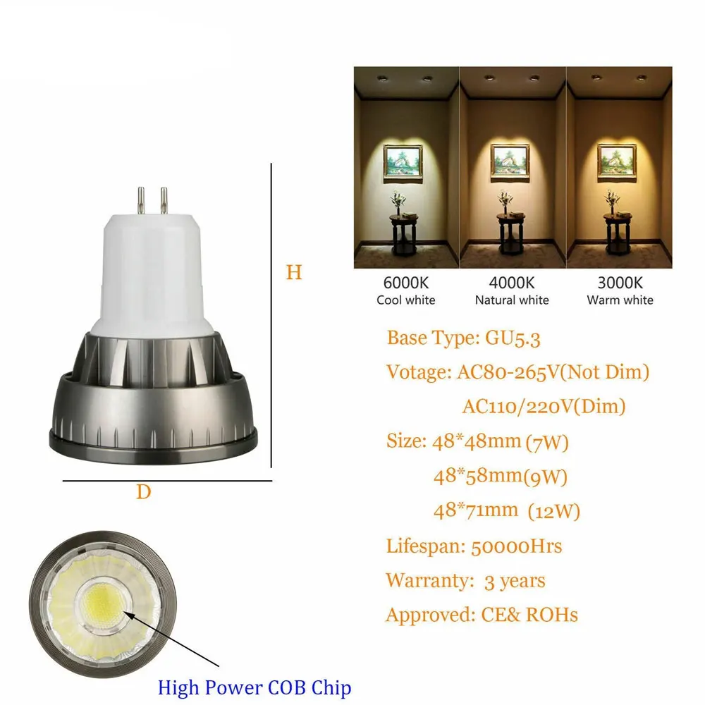 Супер яркий GU10 LED COB Светодиодный прожектор лампа E12 E14 E27 GU5.3 B15 MR16 DC 12V прожектор 7W 9W 12W AC 85-265V