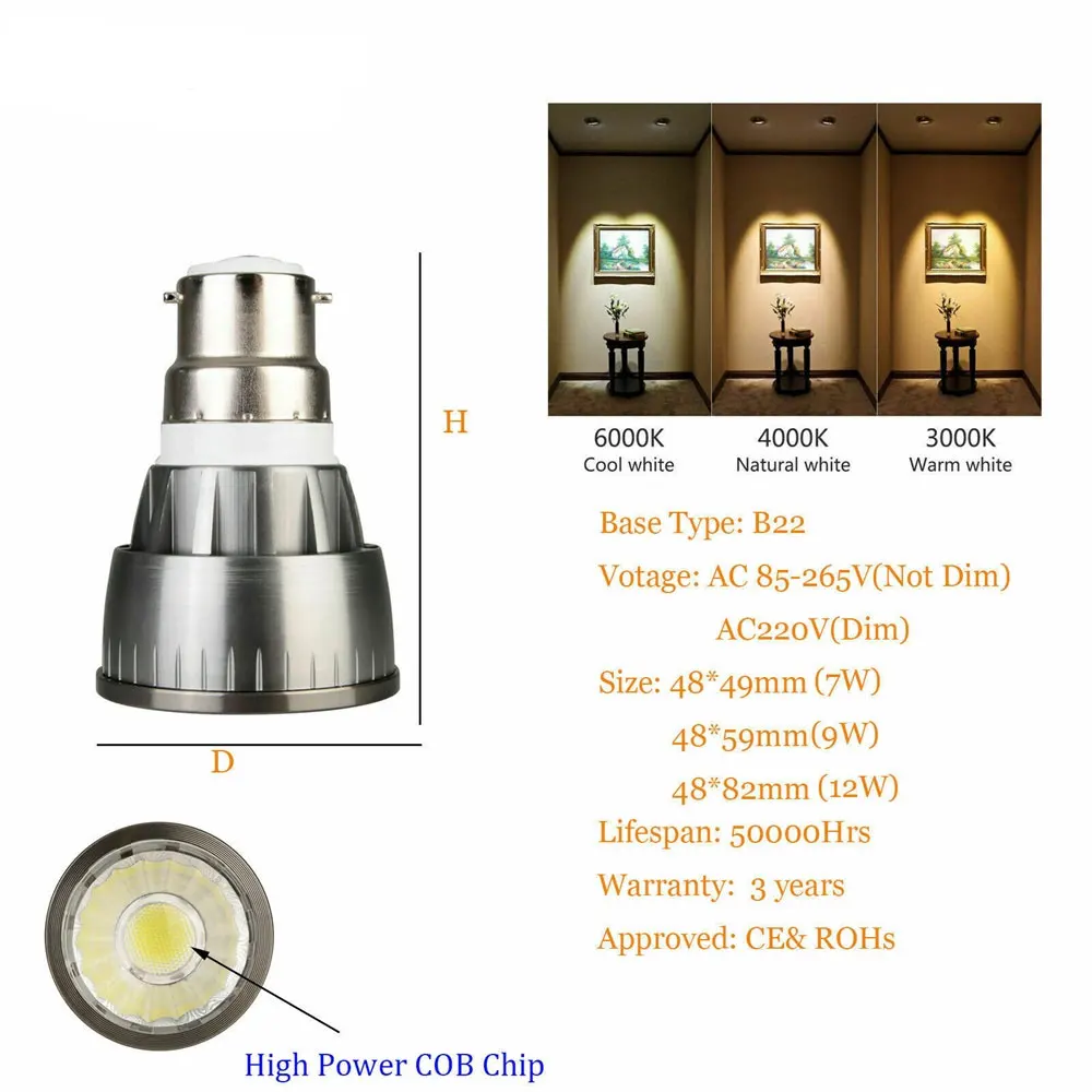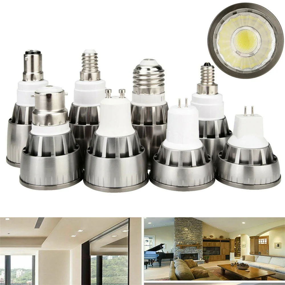 Суперъяркая светодиодная лампочка GU10 COB с цоколем Е14, Е27, GU5.3, B15, MR16, Точечный светильник на 12 В постоянного тока, 7 Вт, 9 Вт, 12 Вт, 85-265 В переменного тока