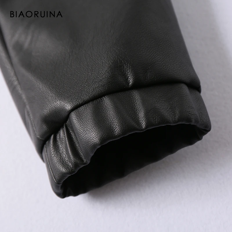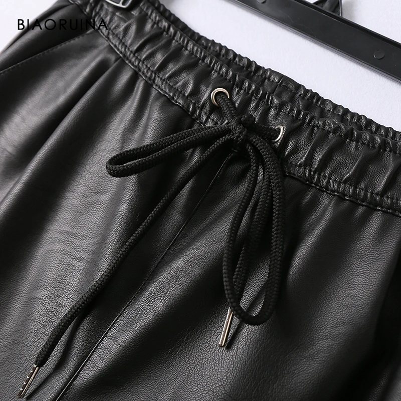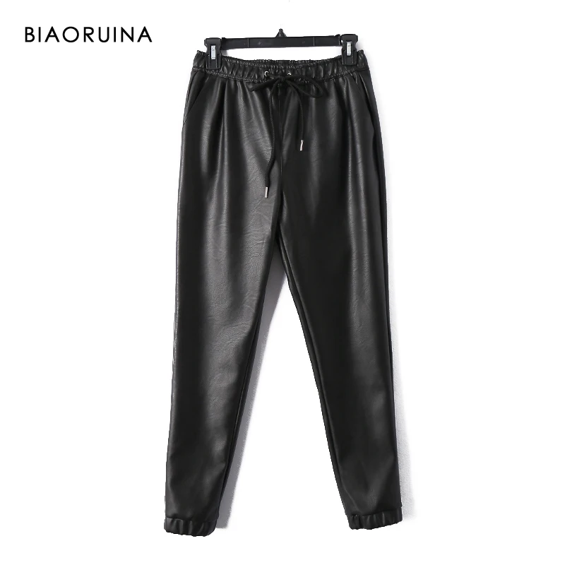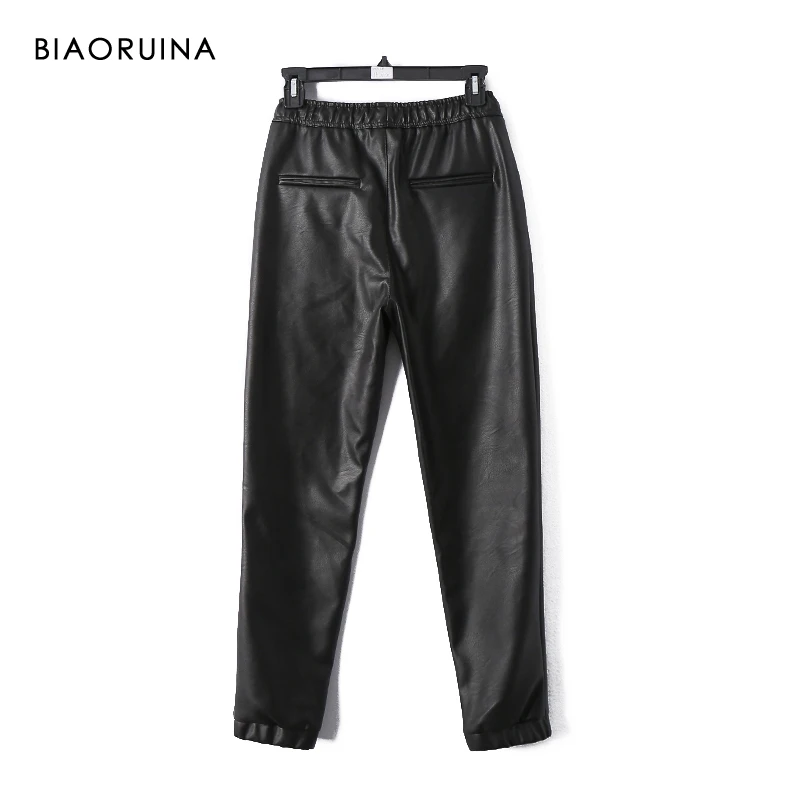 Женские повседневные брюки BIAORUINA, черные узкие брюки-карандаш из искусственной кожи с высокой талией, уличная одежда, новинка