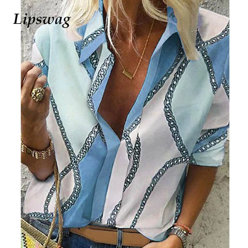 Женская блузка для отдыха Lipswag, осенняя офисная блузка с принтом цепи, стильная блузка с длинным рукавом размера плюс, 5XL