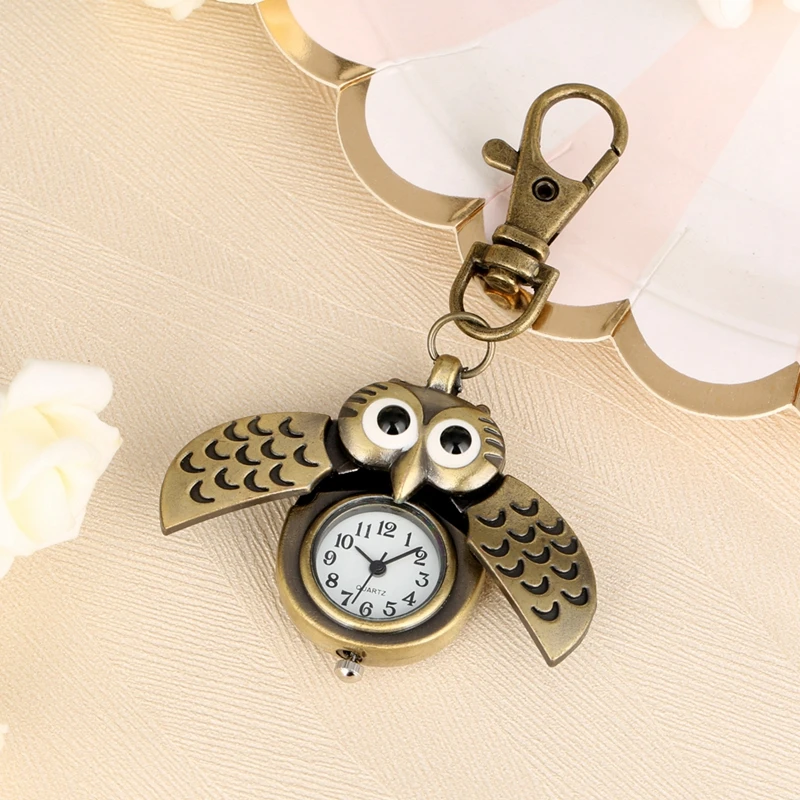 Бронзовые милые брелоки Сова карманные часы с цепочкой золотистые брелоки откидной Чехол часы с животными карманные часы для мужчин женщин мужчин детей