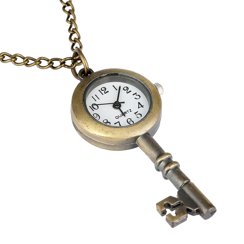Симпатичные винтажные кварцевые карманные часы в античном стиле с подвеской в форме ключа из бронзы