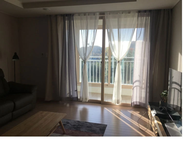 Однотонные современные тюлевые шторы из прозрачной вуали для гостин...