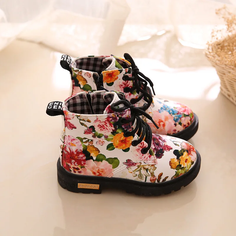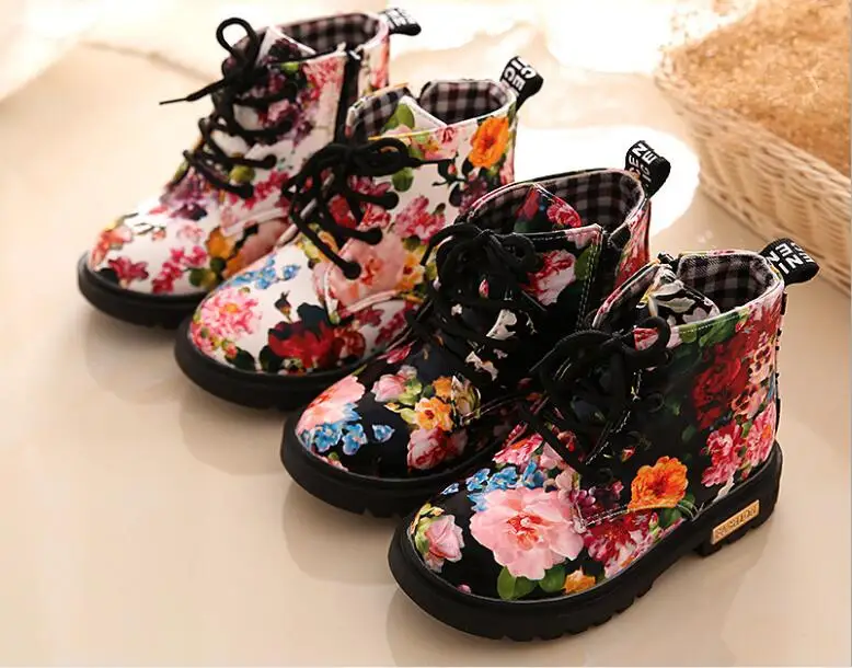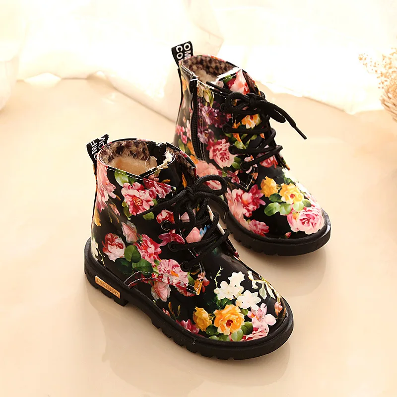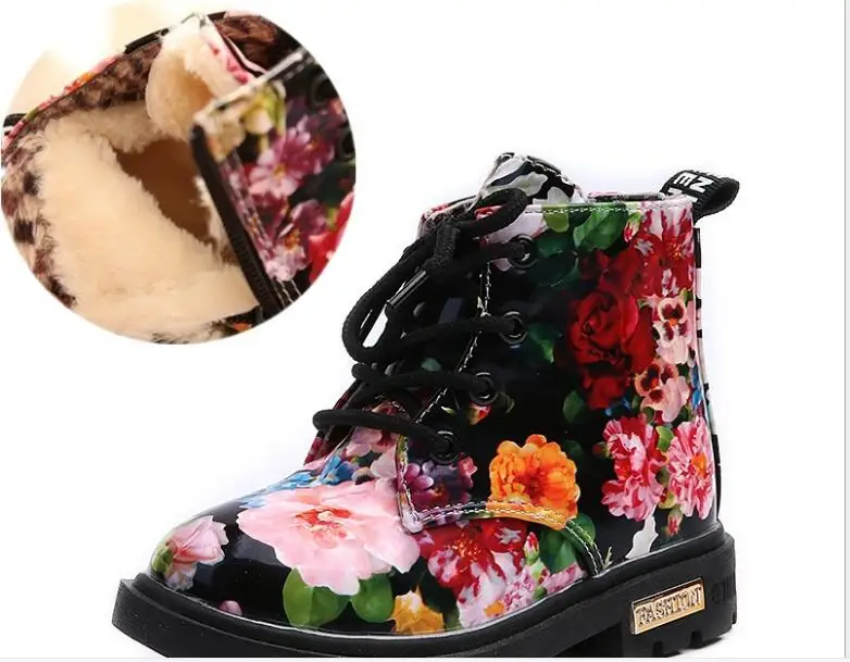 Модные ботинки для девочек; Сезон осень-зима; Новинка; Детские ботинки с цветочным принтом и бархатные ботинки для мальчиков и девочек; Непромокаемые зимние ботинки