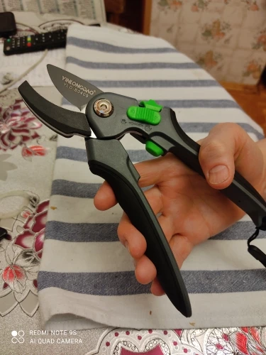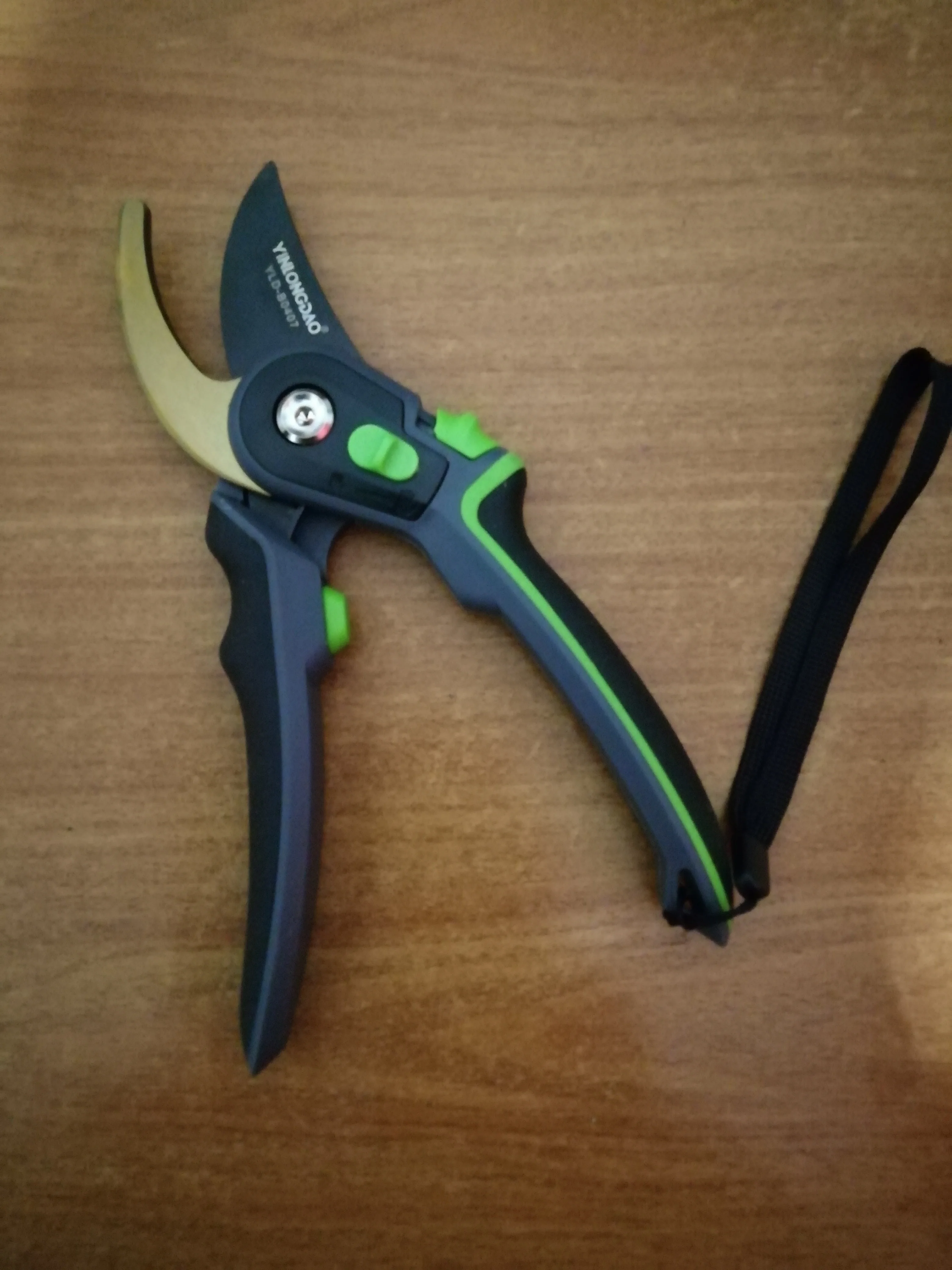 Секатор хорош, удобный, регулировка по руку имеется, немного зря конечно они заточку закрасили, но ладно. Есть тесемка, можно повесить или на руку накинуть. Упаковка явно пережила несколько кругов ада, хотя почтовая была целая и доставка почему то из России ИМЛ, хотя заказывал с Китая. Но товар целый и рабочий, рекомендую.