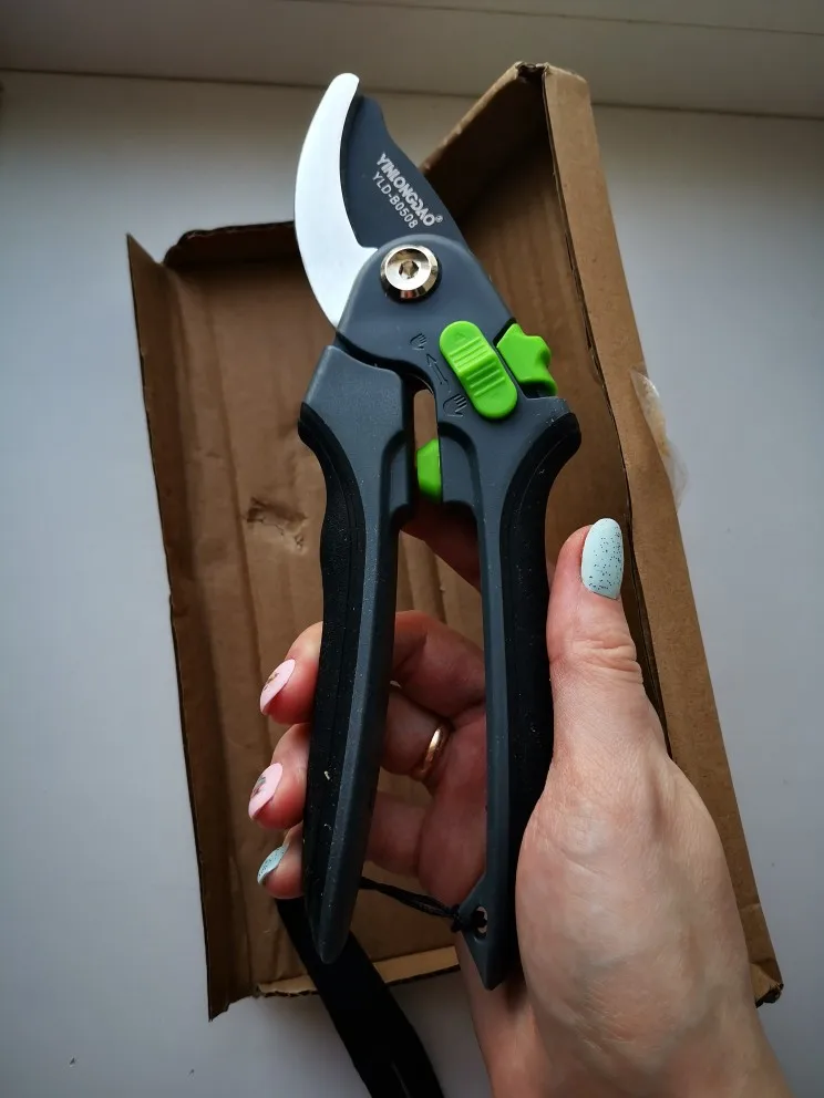 Отличный продукт, удобный захват и приятный пластик. Оптимально работает и Обрезка веток среднего размера. Бесплатная доставка немного медленная, прибыла через 2 месяца, но все равно приемлема.