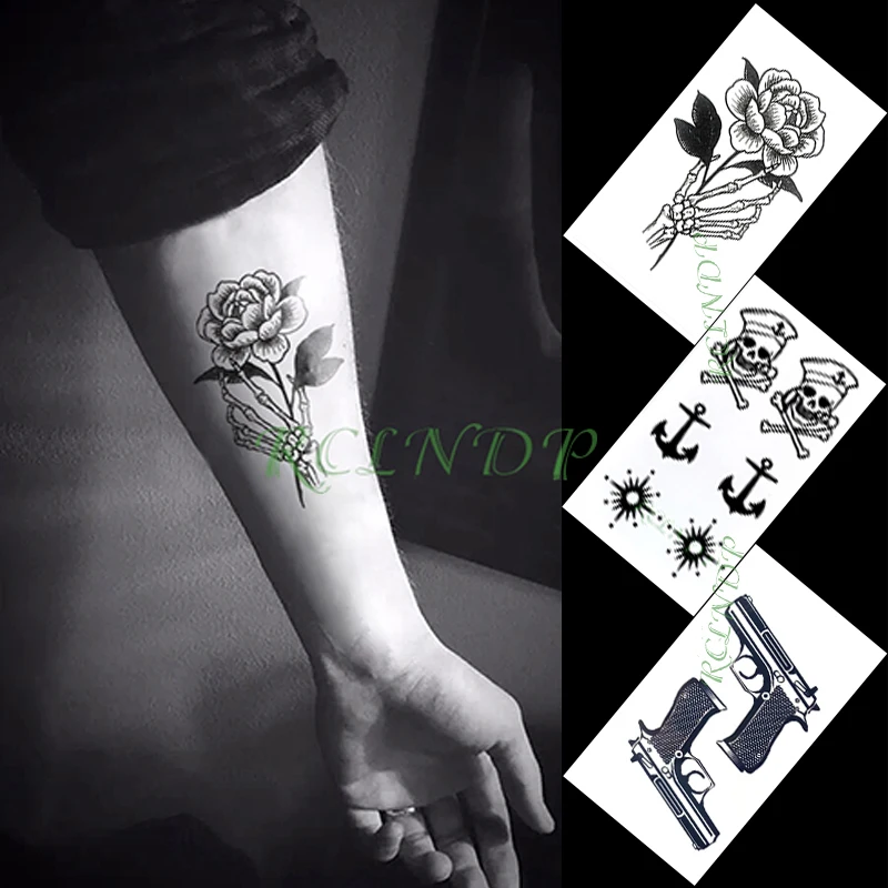Водостойкая Временная тату-наклейка, цветочный пистолет, женское искусство, маленькая тату, флэш-тату, искусственная татуировка для женщин, мужчин и детей