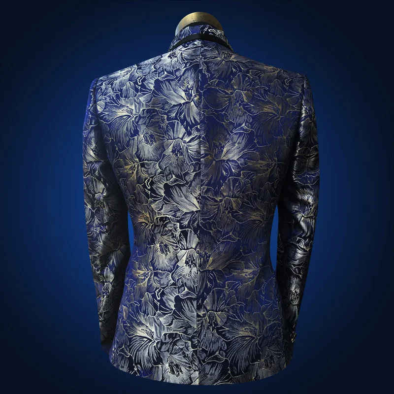 Мужской Жаккардовый костюм PYJTRL из 3 предметов с отложным воротником и цветочным узором